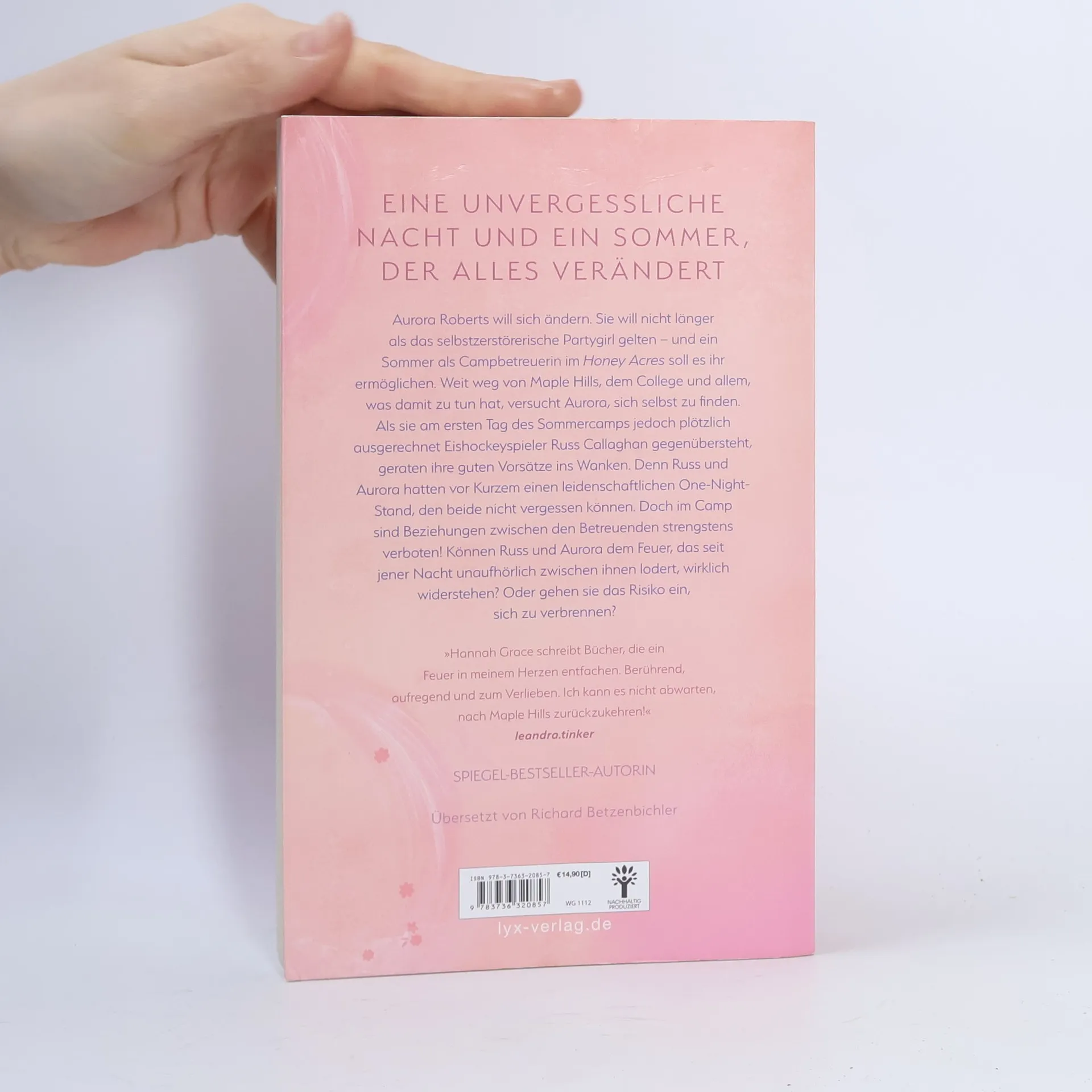 Eine unvergessliche Nacht und ein Sommer, der alles verändert Aurora Roberts will sich ändern. Sie will nicht länger als das selbstzerstörerische Partygirl gelten - und ein Sommer als Campbetreuerin im Honey Acres soll es ihr ermöglichen. Weit weg von Maple Hills, dem College und allem, was damit zu tun hat, versucht Aurora, sich selbst zu finden. Als sie am ersten Tag des Sommercamps jedoch plötzlich ausgerechnet Eishockeyspieler Russ Callaghan gegenübersteht, geraten ihre guten Vorsätze ins Wanken. Denn Russ und Aurora hatten vor Kurzem einen leidenschaftlichen One-Night-Stand, den beide nicht vergessen können. Doch im Camp sind Beziehungen zwischen den Betreuenden strengstens verboten! Können Russ und Aurora dem Feuer, das seit jener Nacht unaufhörlich zwischen ihnen lodert, wirklich widerstehen? Oder gehen sie das Risiko ein, sich zu verbrennen? »Hannah Grace schreibt Bücher, die ein Feuer in meinem Herzen entfachen. Berührend, aufregend und zum Verlieben. Ich kann es nicht abwarten, nach Maple Hills zurückzukehren!« LEANDRA. TINKER Band 2 der MAPLE-HILLS -Reihe von Hannah Grace