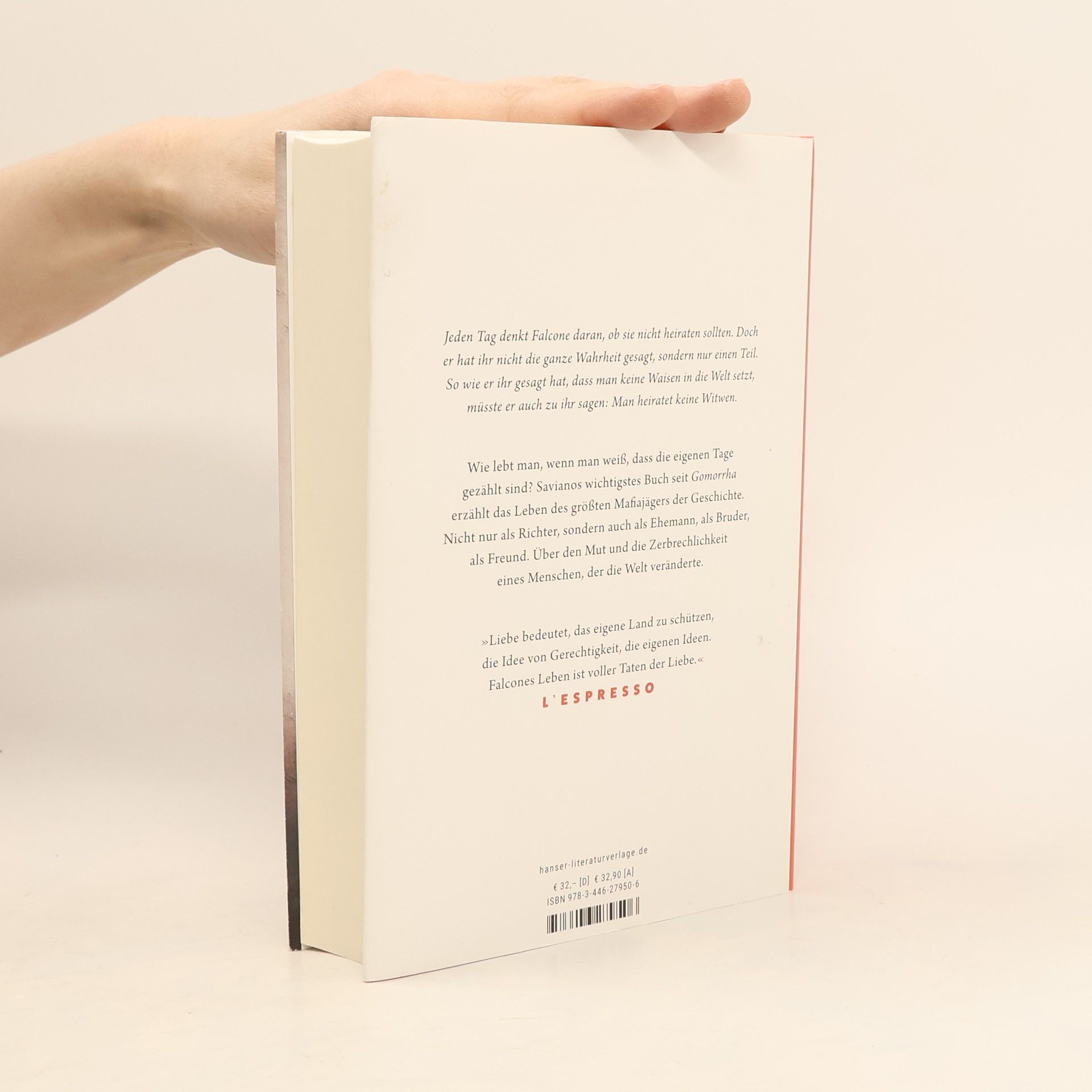 Über den Mut und die Zerbrechlichkeit eines Mannes, der die Welt veränderte. „Saviano macht aus Fakten Literatur.“ Luzia Braun, ZDF Aspekte Wie lebt man, wenn man weiß, dass die eigenen Tage gezählt sind? Savianos wichtigstes Buch seit „Gomorrah“ erzählt das Leben des größten Mafiajägers der Geschichte. Nicht nur als Richter, sondern auch als Ehemann, als Bruder, als Freund. Mit seinem Geldwäsche-Gesetz forderte Falcone die Mafia heraus. Als er am 25. Mai 1992 mit seiner Frau unterwegs zum Wochenendhaus ist, sprengt die Mafia sie mitsamt einem Stück Autobahn in die Luft. Es ist ein Wendepunkt in der Geschichte Italiens und Europas. Saviano, der seit Jahren unter Polizeischutz lebt, zeigt anhand von Falcones Geschichte wie demokratische Strukturen ausgehöhlt werden und wie durch Zivilcourage die Welt verändert werden kann. Ein Buch, das uns alle betrifft.