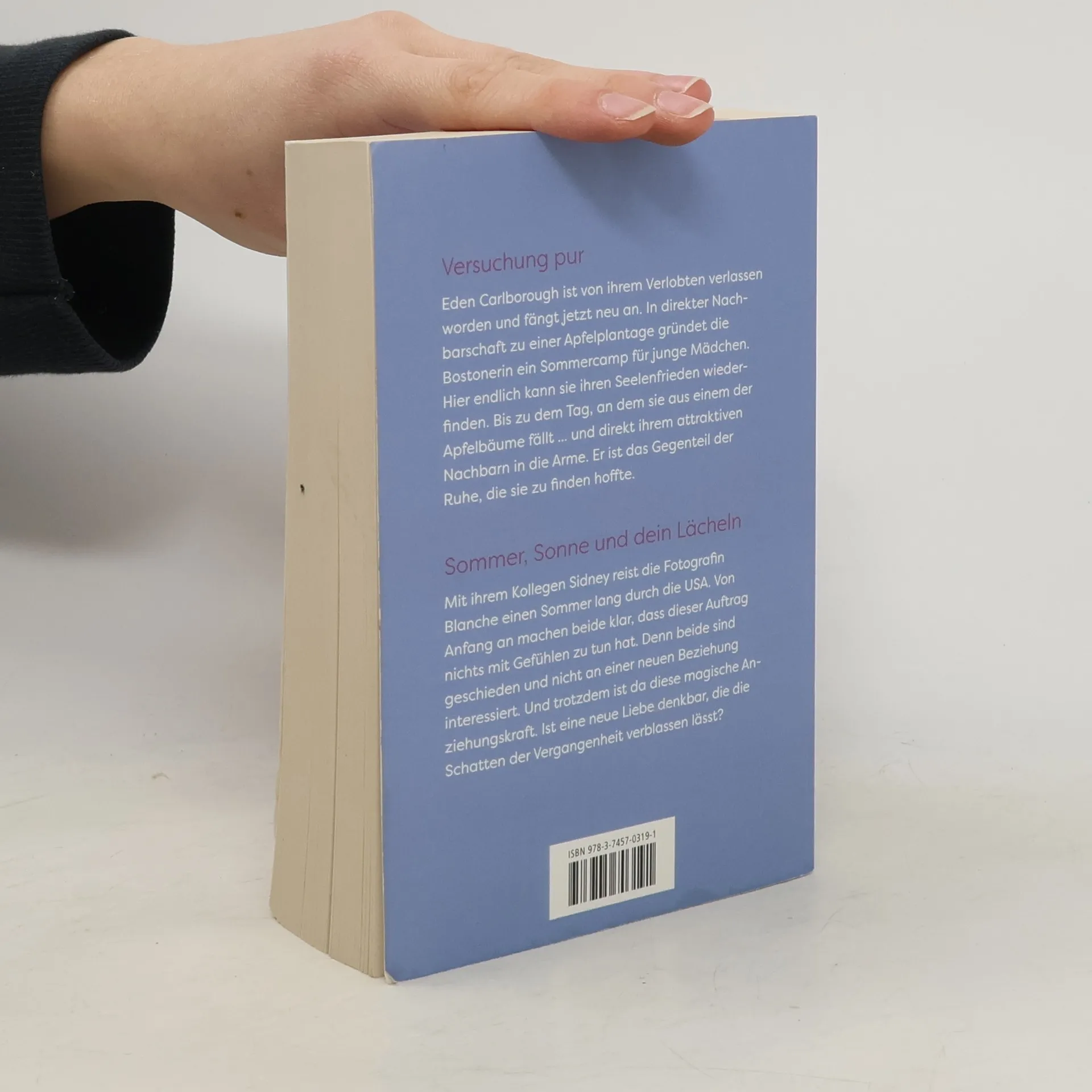 Versuchung pur Eden Carlborough ist von ihrem Verlobten verlassen worden und fängt jetzt neu an. In direkter Nachbarschaft zu einer Apfelplantage gründet die Bostonerin ein Sommercamp für junge Mädchen. Hier endlich kann sie ihren Seelenfrieden wiederfinden. Bis zu dem Tag, an dem sie aus einem der Apfelbäume fällt ... und direkt ihrem attraktiven Nachbarn in die Arme. Er ist das Gegenteil der Ruhe, die sie zu finden hoffte. Sommer, Sonne und dein Lächeln Mit ihrem Kollegen Sidney reist die Fotografin Blanche einen Sommer lang durch die USA. Von Anfang an machen beide klar, dass dieser Auftrag nichts mit Gefühlen zu tun hat. Denn beide sind geschieden und nicht an einer neuen Beziehung interessiert. Und trotzdem ist da diese magische Anziehungskraft. Ist eine neue Liebe denkbar, die die Schatten der Vergangenheit verblassen lässt? »Man kann Wunschträume leider nicht in Flaschen abfüllen. Aber Nora Roberts weiß genau, wie man sie zu Papier bringt.« New York Times »Die erfolgreichste Autorin auf dem Planeten Erde« Washington Post