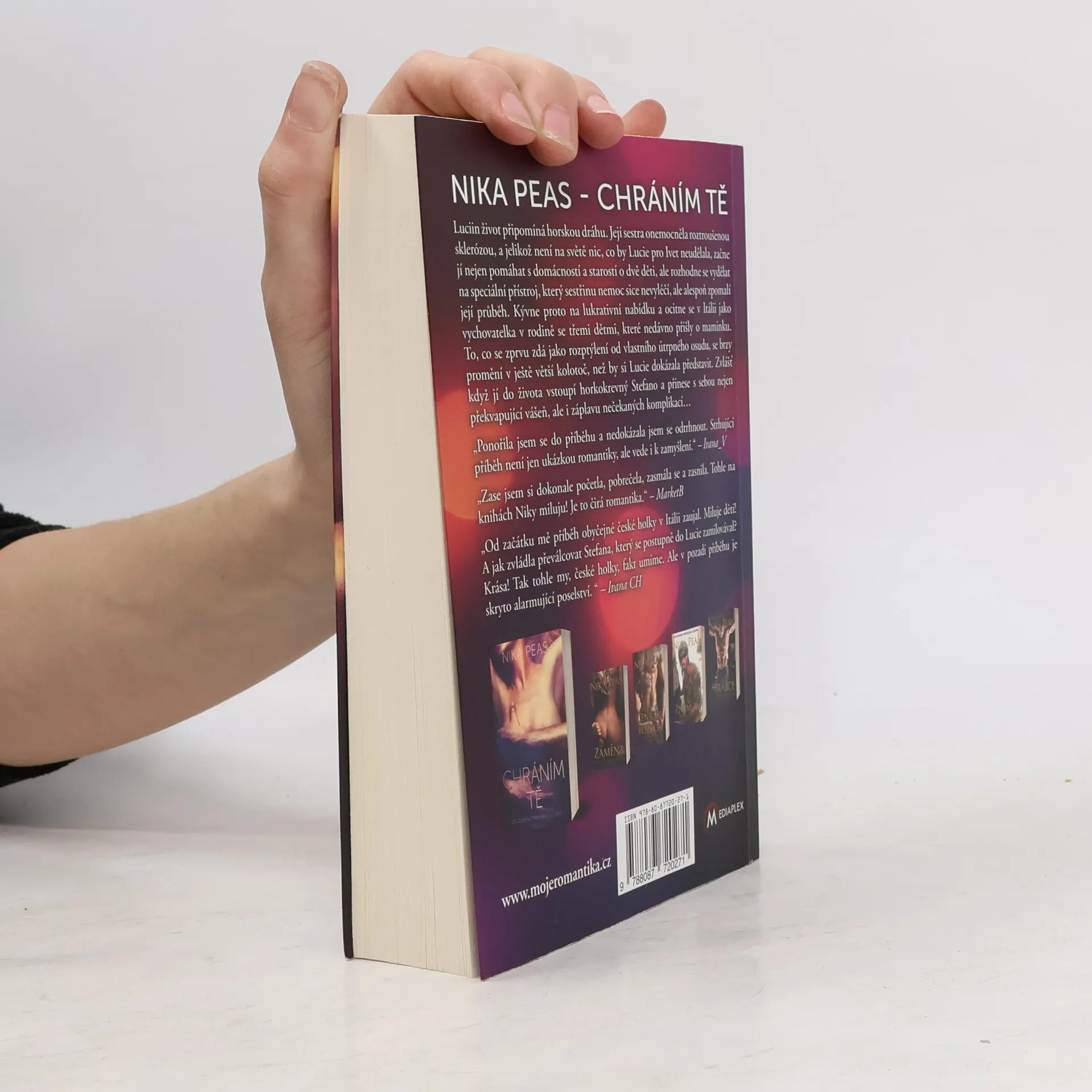 Romatický příběh s erotickým nádechem o Češce Lucii, která potřebuje vydělat peníze na léčbu pro svou sestru a najde si práci v Itálii jako vychovatelka v zámožné rodině. Luciin život poslední dobou připomíná horskou dráhu. Její sestra onemocněla roztroušenou sklerózou, a jelikož není na světě nic, co by Lucie pro svou milovanou Ivetku neudělala, začne jí nejen pomáhat s každodenním chodem domácnosti, ale brzy dospěje k zásadnímu rozhodnutí - musí co nejrychleji vydělat závratný obnos peněz na speciální přístroj, který sestřinu nemoc sice nevyléčí, ale alespoň zpomalí její průběh. Kývne proto na první lukrativní nabídku, která jí přijde do cesty, a ocitne se v Itálii jako vychovatelka v rodině se třemi dětmi, které nedávno přišly o maminku. To, co se zprvu zdá jako rozptýlení od vlastního útrpného osudu, se brzy promění v ještě větší kolotoč, než by si Lucie dokázala představit. Zvlášť když jí do života vstoupí horkokrevný Stefano a přinese s sebou nejen překvapující vášeň, ale i záplavu nečekaných komplikací... Nakladatelská anotace. Kráceno.