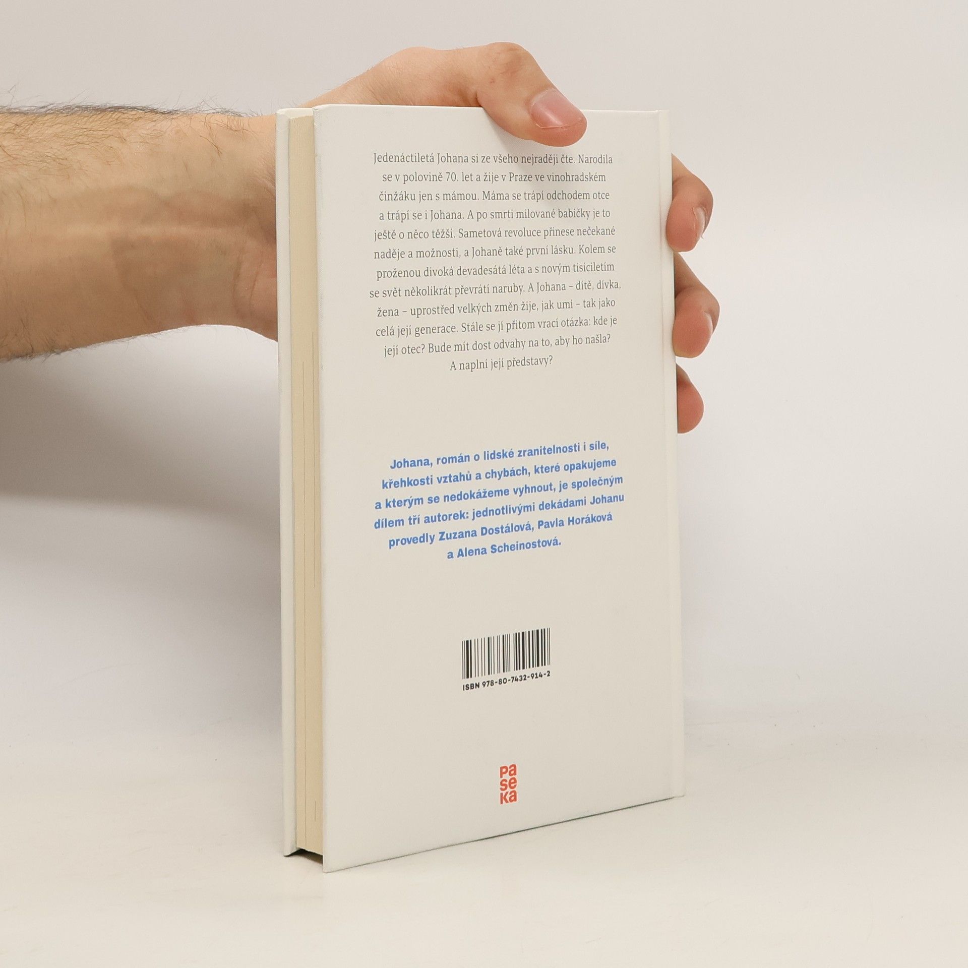 Jedenácté narozeniny chce Johana oslavit se svou nejlepší kamarádkou Simonou, protože je mají ve stejný měsíc. Johanina máma cvičí džezgymnastiku a je krásná. Na tátu si Johana moc nepamatuje, zato s babičkou tráví spoustu času. Ta jí vypráví o tom, co bylo, a dovede zahnat veškeré obavy. Johanu ale vlastně kromě pitomého spolužáka Radka Hadraby a tajného obsahu babiččiny krabičky nic netrápí… Bude to stejné i za třicet let? Svěží novela civilně a bez okázalosti mapuje třicet roků v životě dívky narozené v polovině 70. let. Mohlo by se zdát, že se v ní nic dramatického neděje, přesto však Johana vypovídá o historických událostech i osobních prožitcích leckdy výmluvněji, než dovedou zachytit vypjaté scény. Johana nese i svérázný literární rukopis. O jednotlivé dekády se postaraly tři výjimečné autorky.