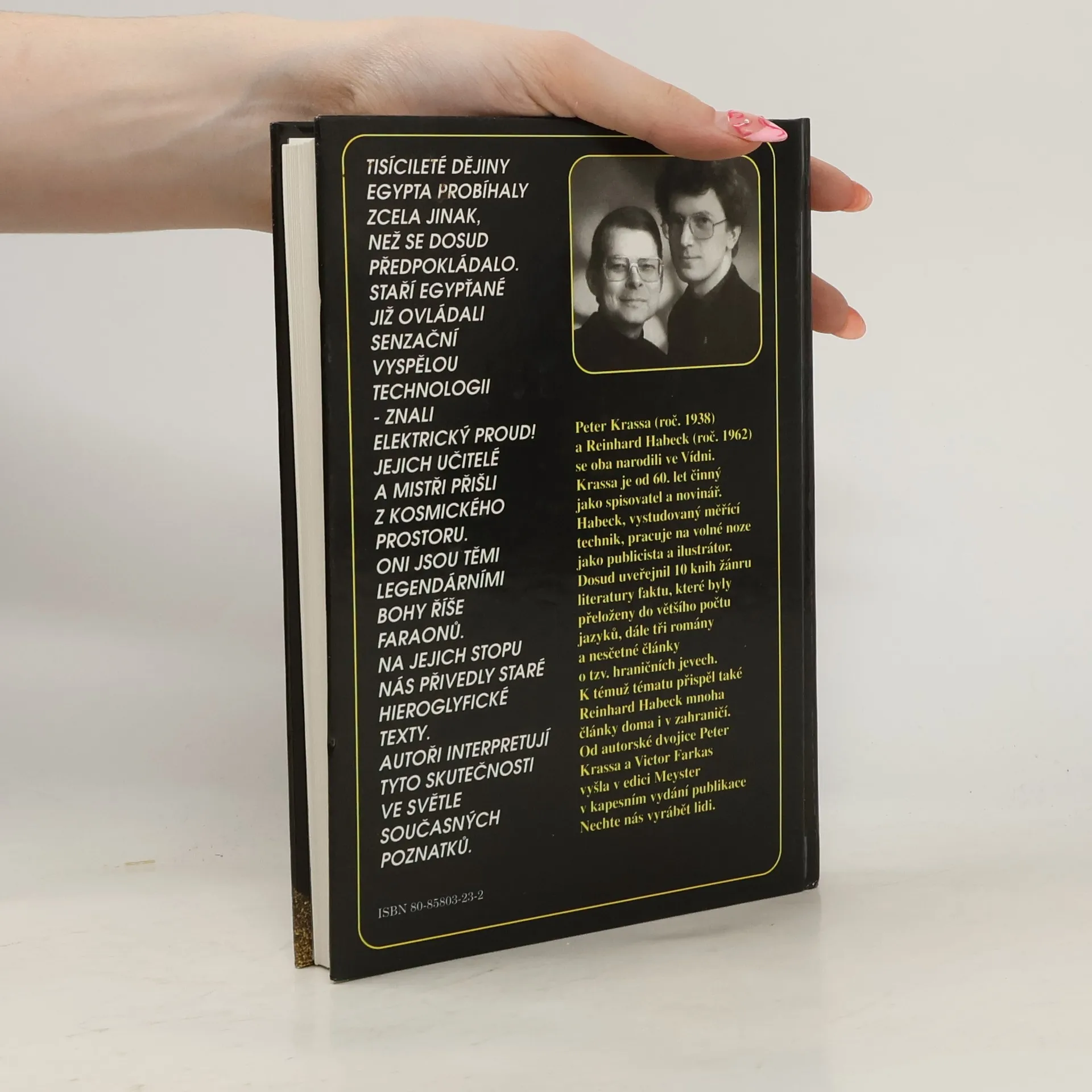 Tisícileté dějiny Egypta probíhaly zcela jinak, než se dosud předpokládalo. Staří egypťané již ovládali senzační vyspělou technologii - znali elektrický proud! Jejich učitelé a mistři přišli z kosmického prostoru. Oni jsou těmi legendárními bohy říše faraonů. Na jejich stopu nás přivedly staré hieroglyfické texty. Autoři interpretují tyto skutečnosti ve světle současných poznatků.... celý text
