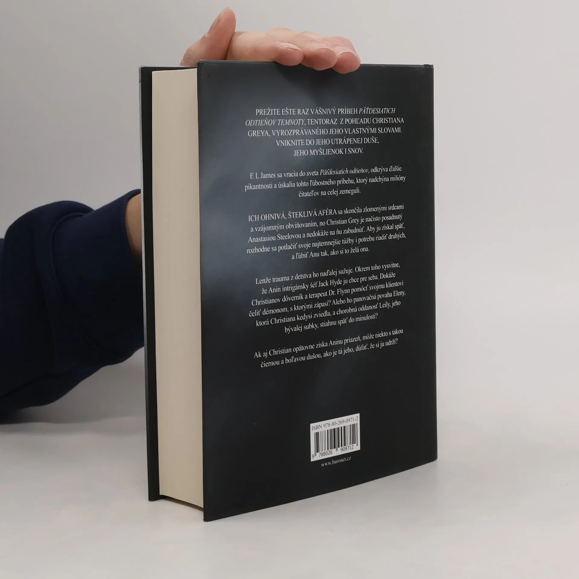 E L James sa vracia do sveta Päťdesiatich odtieňov, odkrýva ďalšie pikantnosti a úskalia tohto ľúbostného príbehu, ktorý nadchýna milióny čitateľov na celej zemeguli. ICH OHNIVÁ, ŠTEKLIVÁ AFÉRA sa skončila zlomenými srdcami a vzájomným obviňovaním, no Christian Grey je načisto posadnutý Anastasiou Steelovou a nedokáže na ňu zabudnúť. Aby ju získal späť, rozhodne sa potlačiť svoje najtemnejšie túžby i potrebu riadiť druhých, a ľúbiť Anu tak, ako si to želá ona. Lenže trauma z detstva ho naďalej sužuje. Okrem toho vysvitne, že Anin intrigánsky šéf Jack Hyde ju chce pre seba. Dokáže Christianov dôverník a terapeut Dr. Flynn pomôcť svojmu klientovi čeliť démonom, s ktorými zápasí? Alebo ho panovačná povaha Eleny, ktorá Christiana kedysi zviedla, a chorobná oddanosť Leily, jeho bývalej subky, stiahnu späť do minulosti? Ak aj Christian opätovne získa Aninu priazeň, môže niekto s takou čiernou a boľavou dušou, ako je tá jeho, dúfať, že si ju udrží?