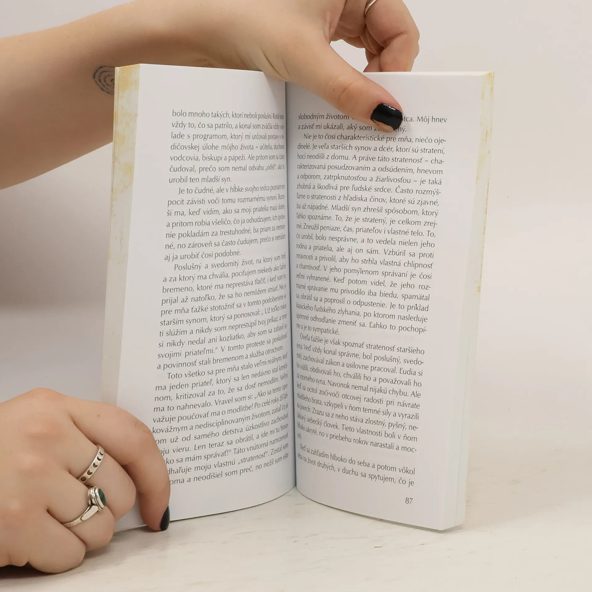 Náhodné stretnutie autora s reprodukciou Rembrandtovho obrazu Návrat márnotratného syna znamenalo začiatok dlhej duchovnej cesty, na ktorú sa vydal Henri Nouwen. Táto kniha je hlbokou meditáciou, v ktorej sa autor spytuje, kam ho Boh volá, aby plnil jeho vôľu. Najskôr sa vciťuje do úlohy mladšieho syna, ktorý sa vracia po mnohých sklamaniach domov; do otcovského domu. Potom sa stavia na miesto staršieho syna, ktorý kriticky, s istou dávkou urazenej samoľúbosti, nezúčastnene hľadí na otcovu milosrdnú lásku. Napokon sa stotožňuje s postavou odpúšťajúceho, láskavého a šľachetného otca. V úvahe o Rembrandtovom zobrazení tohto dramatického-biblického podobenstva rezonujú témy návratu, odpustenia, zmierenia a lásky, ktoré v tejto knihe znovu objavuje každý, kto prežil osamelosť, odvrhnutie, žiarlivosť či hnev. Výzva milovať a odpúšťať, ale aj vedieť prijať lásku a odpustenie sú konečným cieľom, ku ktorému nám ukazuje cestu toto Kristovo podobenstvo.