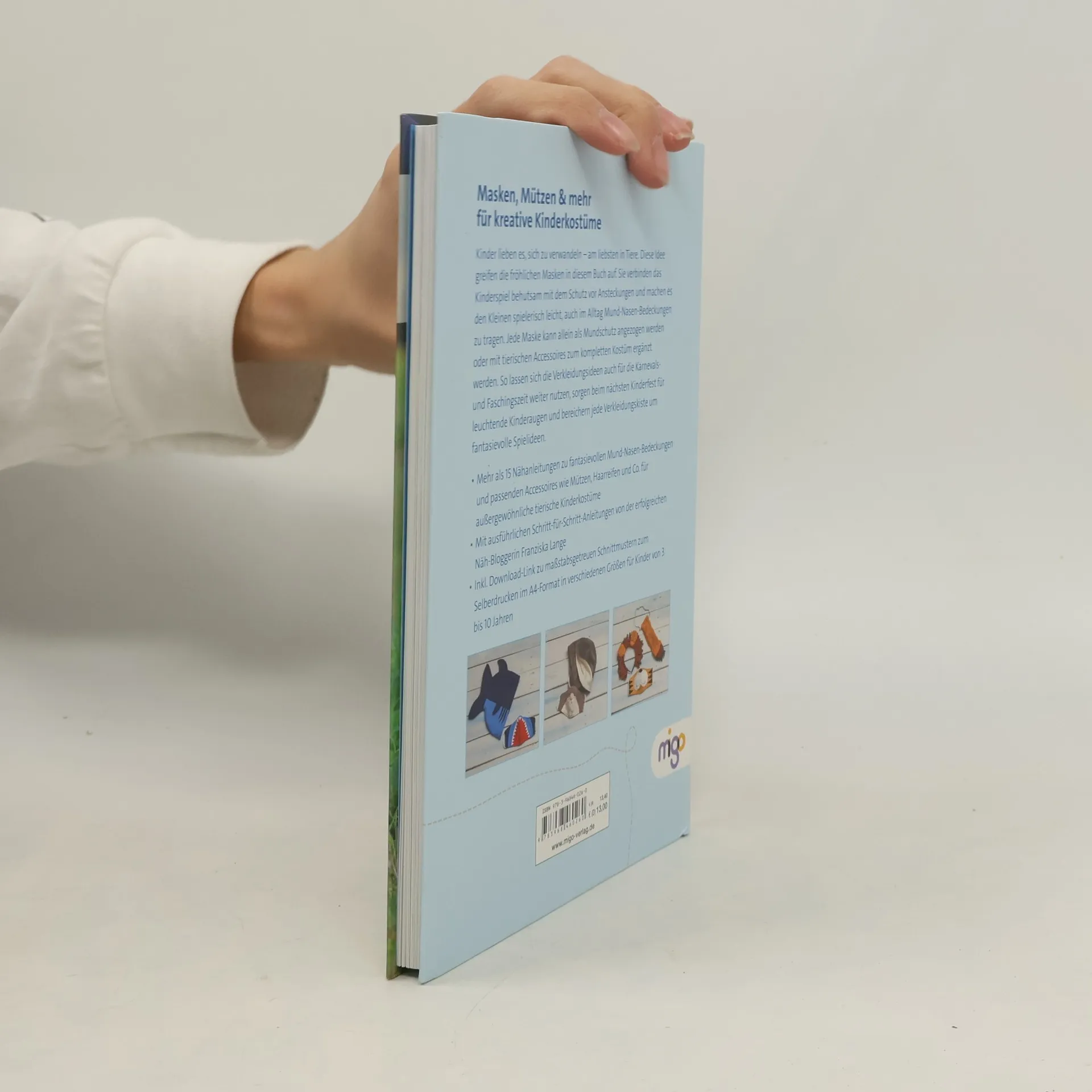 Kindermasken, die Kinderaugen leuchten lassen! Kinder lieben es, sich zu verwandeln – am liebsten in Tiere. Diese Idee greifen die fröhlichen Masken in diesem Buch auf. Sie verbinden das Kinderspiel behutsam mit dem Schutz vor Ansteckungen und machen es den Kleinen spielerisch leicht, auch im Alltag Mund-Nasen-Bedeckungen zu tragen. Jede Maske kann allein als Mundschutz angezogen werden oder mit tierischen Accessoires zum kompletten Kostüm ergänzt werden. So lassen sich die Verkleidungsideen auch für die Karnevals- und Faschingszeit weiter nutzen, sorgen beim nächsten Kinderfest für leuchtende Kinderaugen und bereichern jede Verkleidungskiste um fantasievolle Spielideen. – Mehr als 15 Nähanleitungen zu fantasievollen Mund-Nasen-Bedeckungen und passenden Accessoires wie Mützen, Haarreifen und Co. für außergewöhnliche tierische Kinderkostüme – Mit ausführlichen Schritt-für-Schritt-Anleitungen von der erfolgreichen Näh-Bloggerin Franziska Lange – Inkl. Download-Link zu maßstabsgetreuen Schnittmustern zum Selberdrucken im A4-Format in verschiedenen Größen für Kinder von 3 bis 10 Jahren