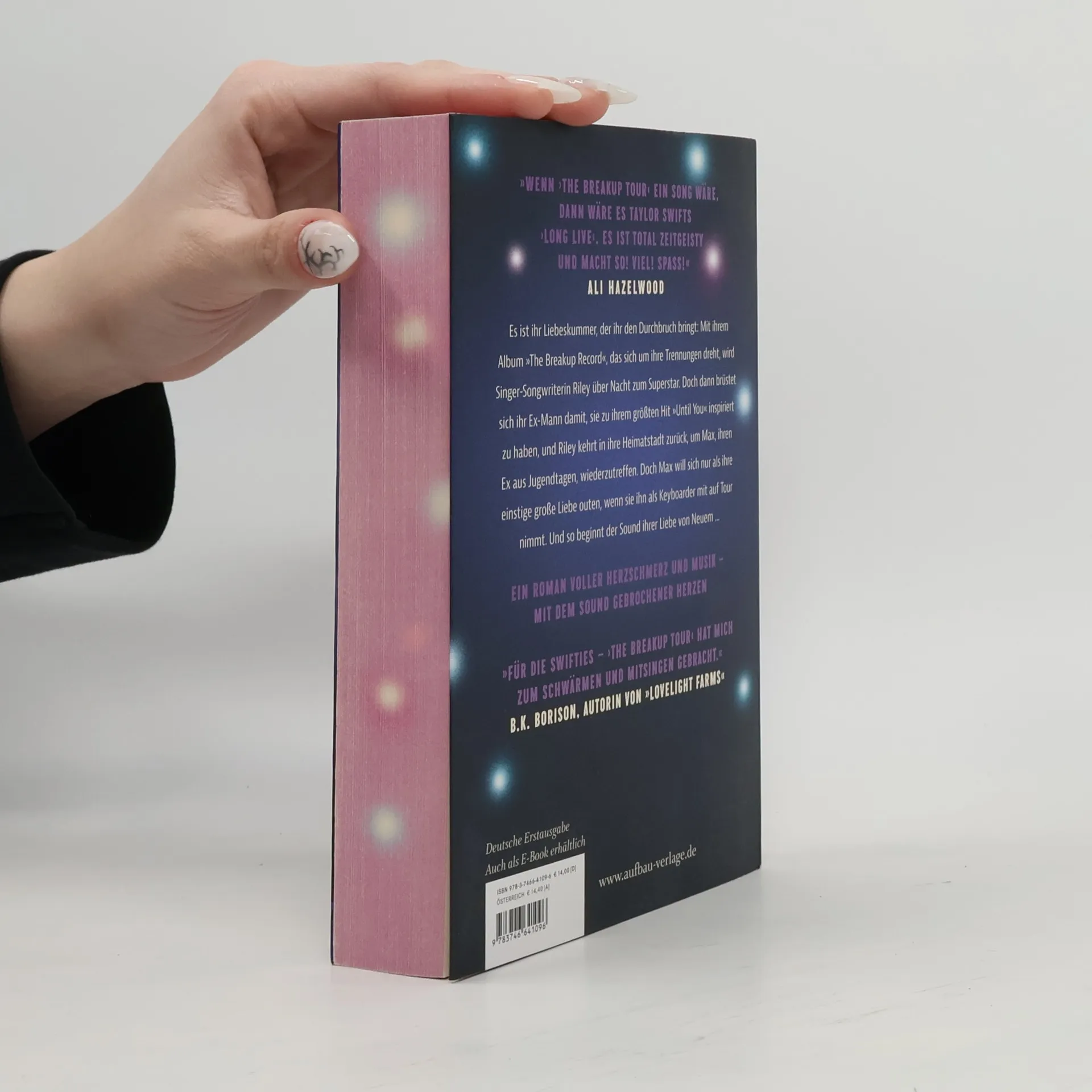 »Wenn ›The Breakup Tour‹ ein Song wäre, dann wäre es Taylor Swifts ›Long Live‹. Es ist total zeitgeisty und macht so! viel! Spaß!« Ali Hazelwood Es ist ihr Liebeskummer, der ihr den Durchbruch bringt: Mit ihrem Album »The Breakup Record«, das sich um ihre Trennungen dreht, wird Singer-Songwriterin Riley über Nacht zum Superstar. Doch dann brüstet sich ihr Ex-Mann damit, sie zu ihrem größten Hit »Until You« inspiriert zu haben, und Riley kehrt in ihre Heimatstadt zurück, um Max, ihren Ex aus Jugendtagen, wiederzutreffen. Aber Max will sich nur als ihre einstige große Liebe outen, wenn sie ihn als Keyboarder mit auf Tour nimmt. Und so beginnt der Sound ihrer Liebe von Neuem … Ein Roman voller Herzschmerz und Musik mit dem Sound gebrochener Herzen. »Für die Swifties – ›The Breakup Tour‹ hat mich zum Schwärmen und Mitsingen gebracht.« B. K. Borison, Autorin von »Lovelight Farms« »Süß und angsty zugleich, voller Musik und zweiter Chancen.« Ali Hazelwood