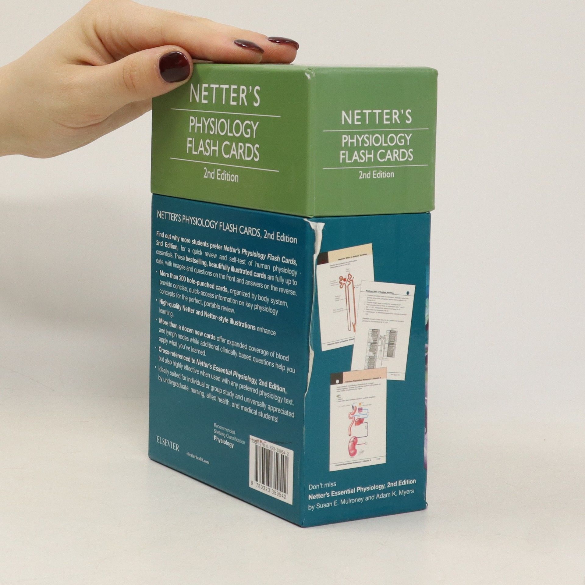 Find out why more students prefer Netter's Physiology Flash Cards, 2nd Edition, for a quick review and self-test of human physiology essentials. These bestselling, beautifully illustrated cards are fully up to date, with images and questions on the front, answers and clinical correlations on the reverse. Over 200 hole-punched cards, organized by body system, provide concise, quick-access information on key physiology concepts for the perfect, portable review. High-quality Netter and Netter-style illustrations enhance learning. More than a dozen new cards offer expanded coverage of blood and lymph nodes while more clinical correlates throughout help you apply what you've learned. Cross-referenced to Netter's Essential Physiology, 2nd Edition, but also highly effective when used with any preferred physiology text. Ideally suited for individual or group study - and universally appreciated by undergraduate, nursing, allied health, and medical students! Over a dozen new cards - including expanded coverage of blood and lymph and more clinical correlates Cross-references to the 2e of the parent book Electronic options (**not free with print**)