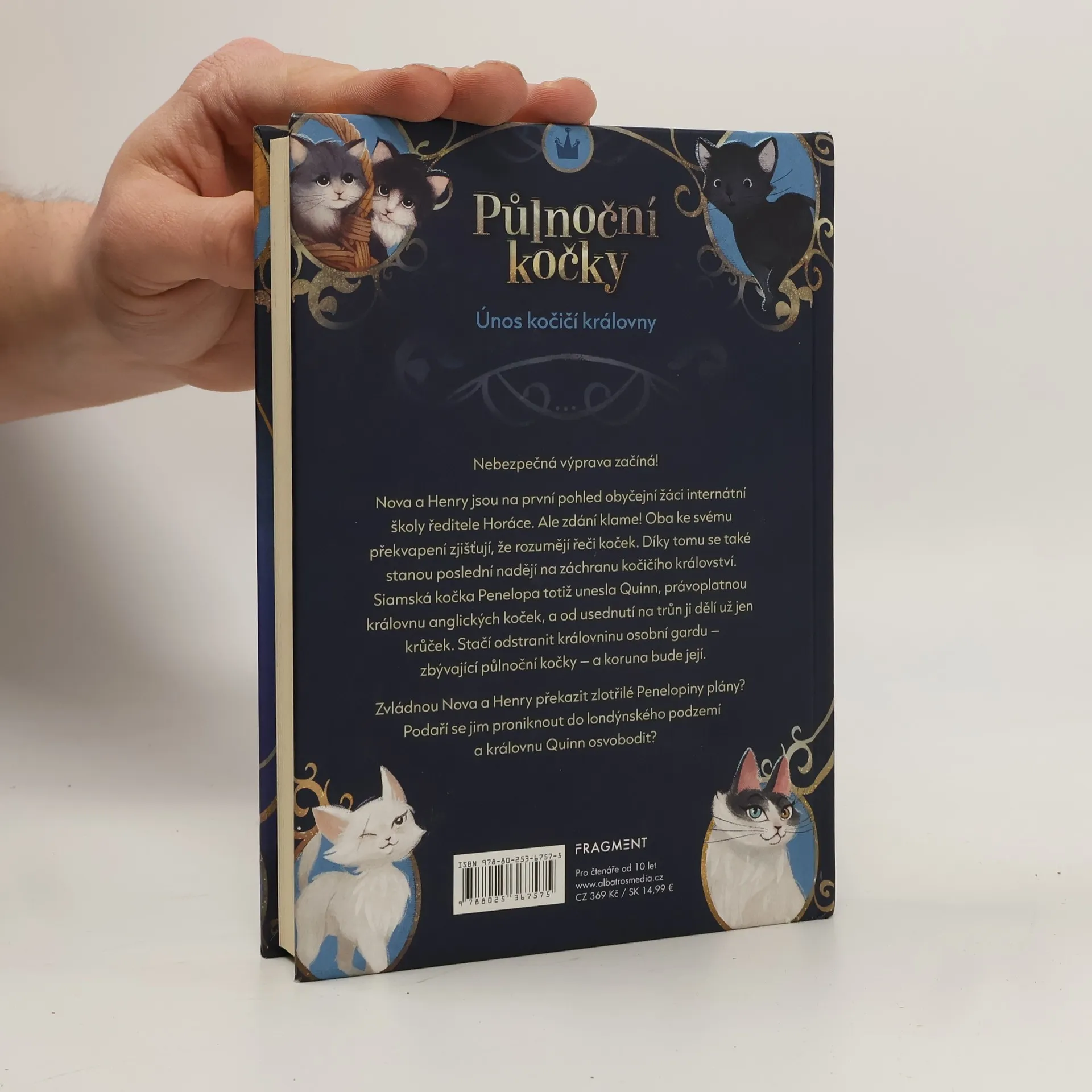 Nebezpečná výprava na pomoc královně koček začíná! První díl dobrodružné série. Žáci internátní školy Nova a Henry ke svému překvapení zjišťují, že rozumějí řeči koček. Díky tomu se stanou poslední nadějí na záchranu kočičího království. Siamská kočka Penelopa totiž unesla Quinn, právoplatnou královnu anglických koček, a od usednutí na trůn ji dělí už jen krůček. Stačí odstranit královninu osobní gardu – zbývající půlnoční kočky – a koruna bude její. Zvládnou Nova a Henry překazit zlotřilé Penelopiny plány a královnu Quinn osvobodit?
