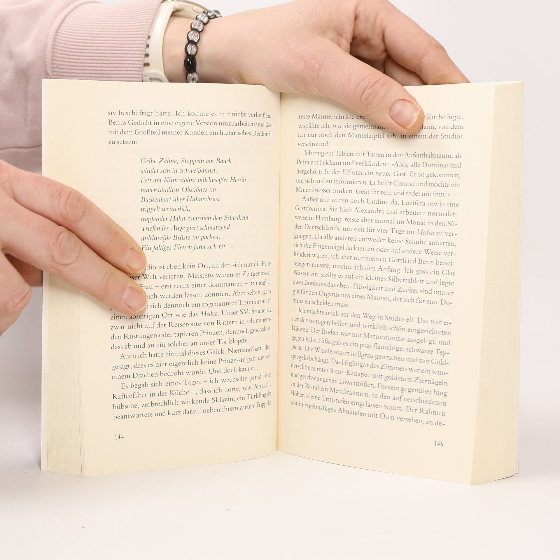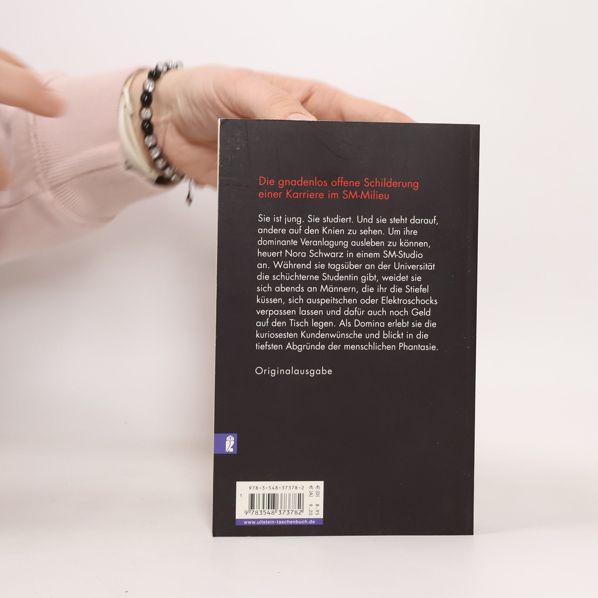 Sie ist jung. Sie studiert. Und sie steht darauf, andere auf den Knien zu sehen. Um ihre dominante Veranlagung ausleben zu können, heuert Nora Schwarz in einem SM-Studio an. Während sie tagsüber an der Universität die schüchterne Studentin gibt, weidet sie sich abends an Männern, die ihr die Stiefel küssen, sich auspeitschen oder Elektroschocks verpassen lassen und dafür auch noch Geld auf den Tisch legen. Als Domina erlebt sie die kuriosesten Kundenwünsche und blickt in die tiefsten Abgründe der menschlichen Phantasie.