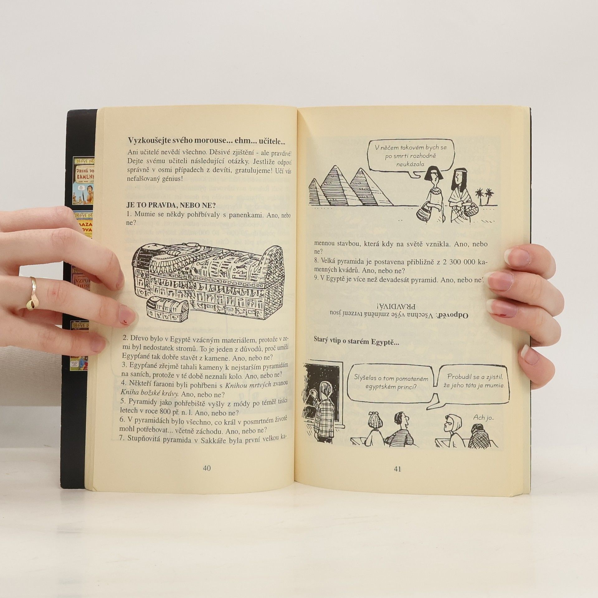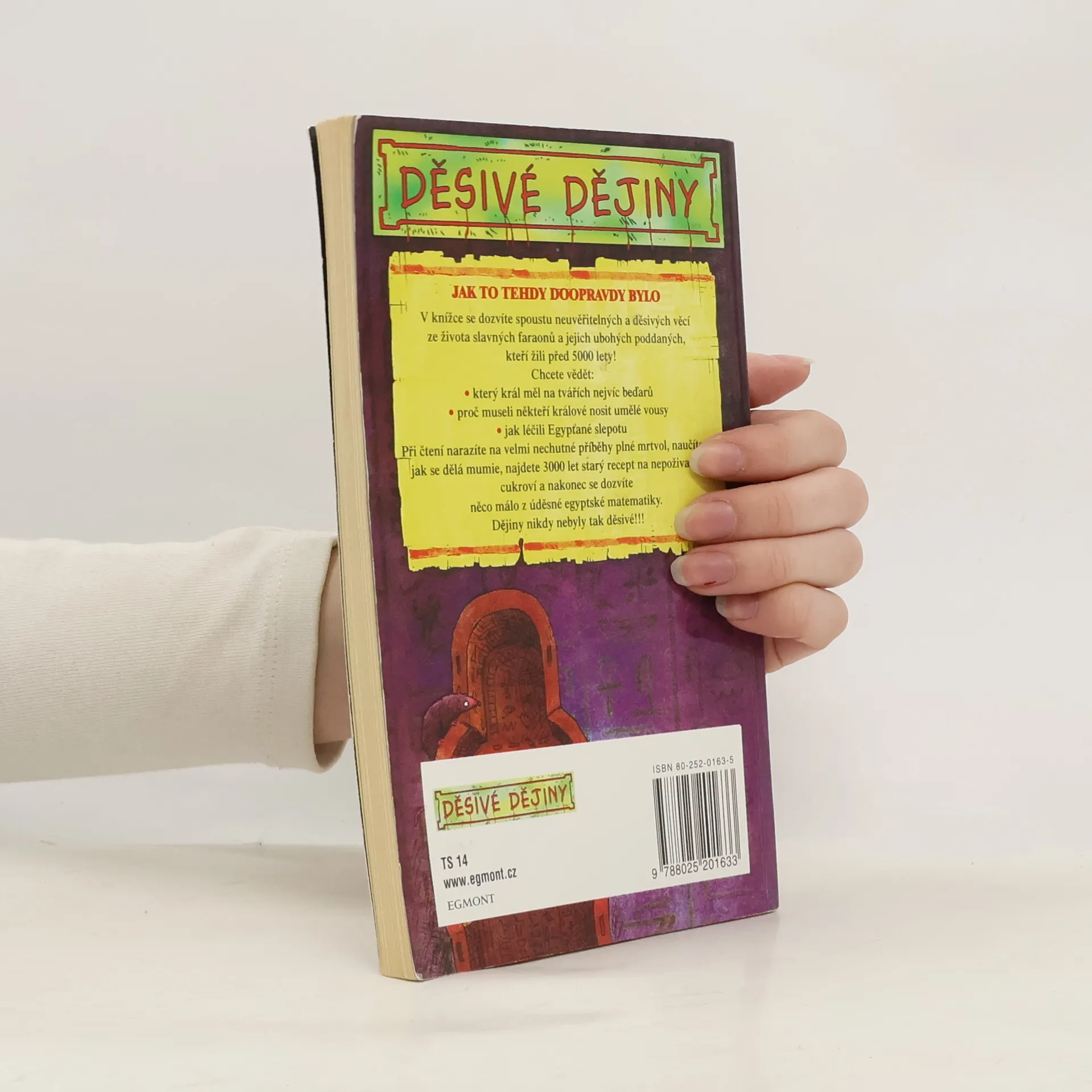 Jak to tehdy doopravdy bylo! V knížce se dozvíte spoustu neuvěřitelných a děsivých věcí ze života slavných faraonů a jejich ubohých poddaných, kteří žili před 5000 lety! Chcete vědět: . který král měl na tvářích nejvíc beďarů? . proč museli někteří králové nosit umělé vousy? . jak léčili Egypťané slepotu? Při čtení narazíte na velmi nechutné příběhy plné mrtvol, naučíte se, jak se dělá mumie, najdete 3000 let starý recept na nepoživatelné cukroví a nakonec se dozvíte něco málo z úděsné egyptské matematiky. Dějiny,nikdy nebyly tak děsivé!!!