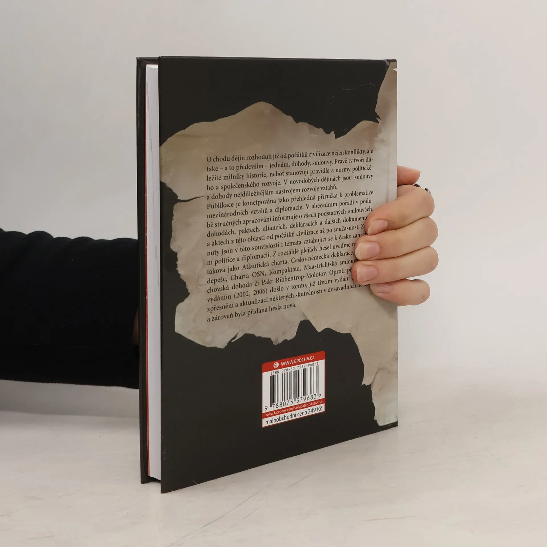 O chodu dějin rozhodují již od počátků civilizace nejen konflikty, ale také – a to především – jednání, dohody, smlouvy. Právě ty tvoří důležité milníky historie, neboť stanovují pravidla a normy politického a společenského rozvoje. V novodobých dějinách jsou smlouvy a dohody nejdůležitějším nástrojem rozvoje mezinárodních vztahů. Publikace je koncipována jako přehledná příručka k problematice mezinárodních vztahů a diplomacie. V abecedním pořadí v podobě stručných zpracování informuje o všech podstatných mezinárodních smlouvách, dohodách, paktech, aliancích, deklaracích a dalších dokumentech a aktech z této oblasti od počátků lidské civilizace až po současnost. Zahrnuty jsou v této souvislosti i témata vztahující se k české zahraniční politice a diplomacii. Z rozsáhlé plejády hesel uveďme např. taková jako Atlantická charta, Česko-německá deklarace, Emžská depeše, Charta OSN, Kompaktáta, Maastrichtská smlouva, Mnichovská dohoda či Pakt Ribbentrop-Molotov. Oproti předchozím vydáním (2002, 2006) došlo v tomto, již třetím vydání k dalšímu zpřesnění a aktualizaci některých skutečností v dosavadních heslech a zároveň byla přidána hesla nová.