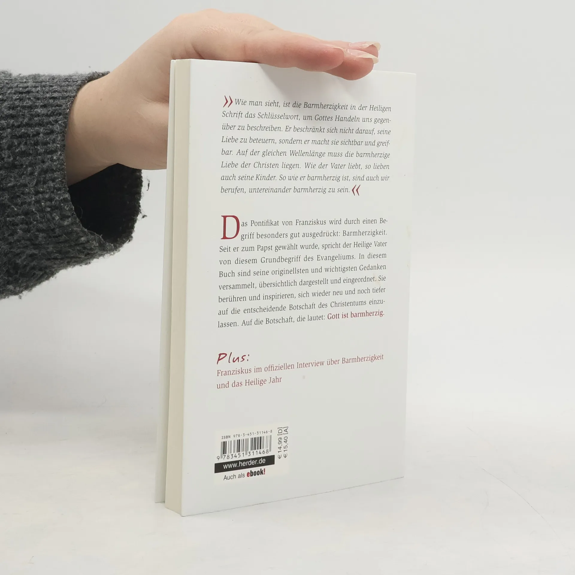 Papst Franziskus begeistert und berührt die Menschen. Im Zentrum seines Denken, Sprechens und Handelns steht dabei eine Ü Gott ist barmherzig. Wohl keine andere Botschaft wiederholt der Papst so oft, kaum etwas wird so sehr mit seinem Pontifikat verbunden wie die Rede von der Barmherzigkeit Gottes. In diesem Buch sind die wichtigsten Texte, Predigten und Ansprachen dazu versammelt. Wer sie liest, hört Franziskus sprechen und versteht, weshalb die Barmherzigkeit Gottes für ihn Schlüsselbegriff des Evangeliums und Leitlinie seines ganzen Handelns ist. Papst Franziskus begeistert und berührt die Menschen. Im Zentrum seines Denken, Sprechens und Handelns steht dabei eine Ü Gott ist barmherzig. Wohl keine andere Botschaft wiederholt der Papst so oft, kaum etwas wird so sehr mit seinem Pontifikat verbunden wie die Rede von der Barmherzigkeit Gottes. In diesem Buch sind die wichtigsten Texte, Predigten und Ansprachen dazu versammelt. Wer sie liest, hört Franziskus sprechen und versteht, weshalb die Barmherzigkeit Gottes für ihn Schlüsselbegriff des Evangeliums und Leitlinie seines ganzen Handelns ist.