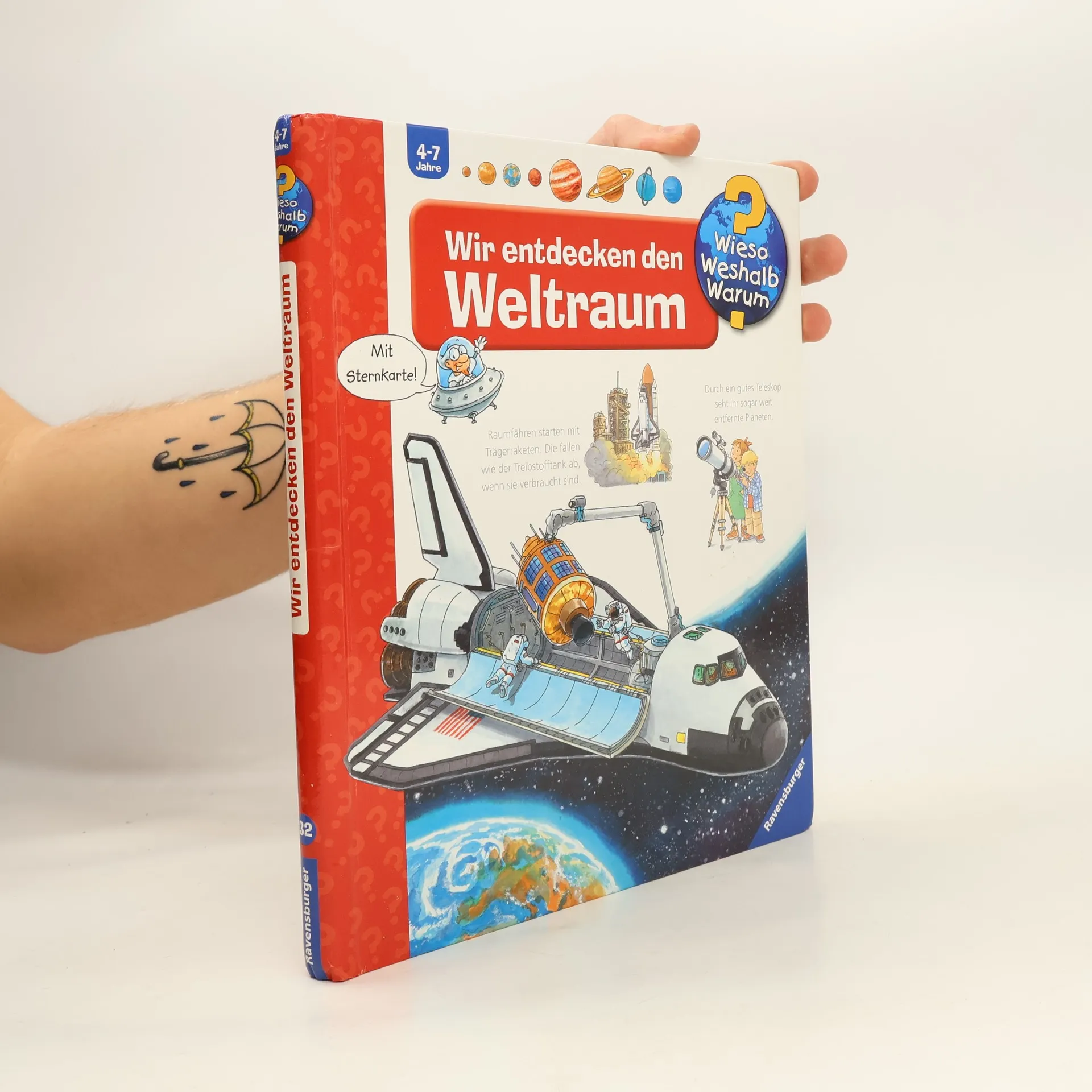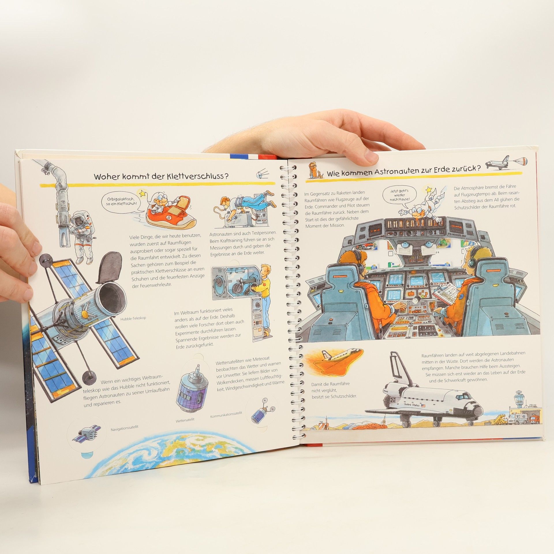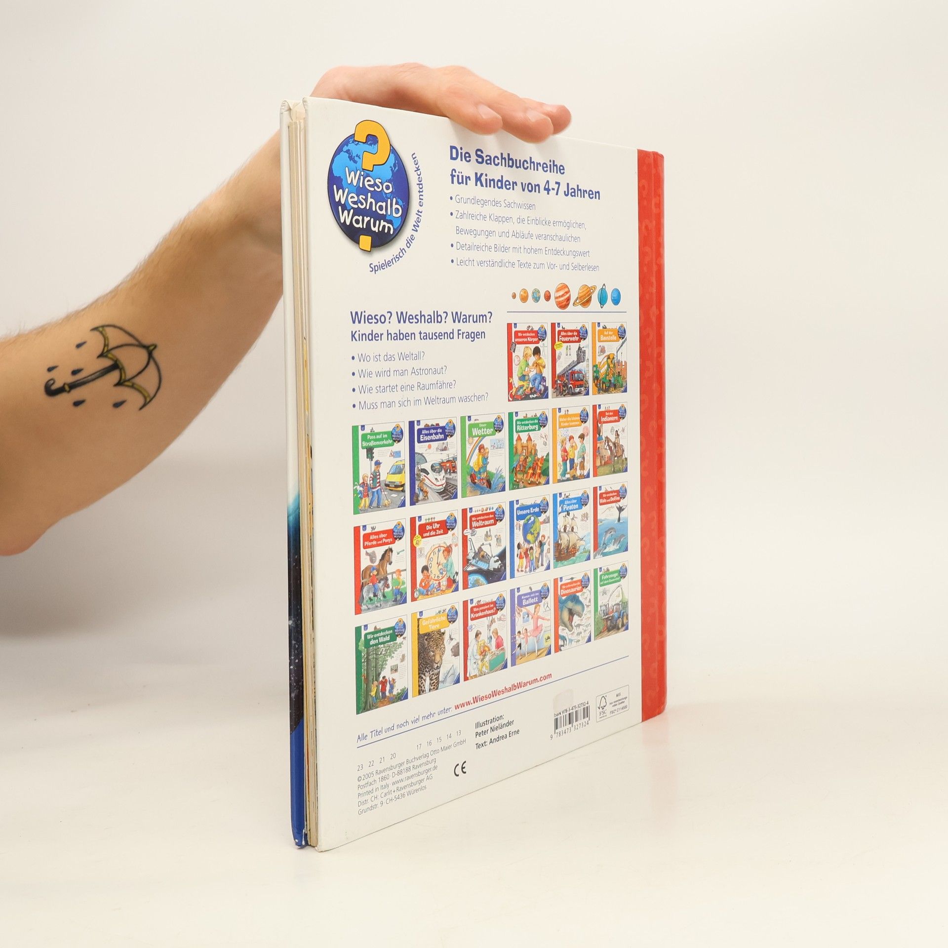 Die Faszination des Weltraums zieht auch Kindergartenkinder in ihren Bann. Fragen wie: Wohnt da oben noch jemand? Gibt es den Mann im Mond? Wie sieht es in der Internationalen Raumstation aus? Was muss ein Astronaut alles können? Wie funktioniert die Toilette im All und wie sieht unsere Erde von oben aus? werden auf spannende Weise beantwortet. Das Buch erklärt die Geheimnisse von Sonnen, Planeten und Monden, zeigt, wie Astronauten in der Schwerelosigkeit leben und hebt die Schönheit und Einzigartigkeit unseres Planeten hervor. Die Sachbuchreihe richtet sich an Kinder von 4–7 Jahren und beantwortet alltägliche Fragen, die Kinder neugierig machen. Themen wie das Aussterben der Dinosaurier, der nächtliche Himmel oder die Funktion des Blutes werden altersgerecht und mit viel Liebe zum Detail behandelt. Detailreiche Bilder, verständliche Texte und überraschende Klappen veranschaulichen Bewegungen und Abläufe, sodass Kinder ihre Themen selbstständig erkunden können. Der Spaß am Entdecken, die liebevolle Gestaltung und die hochwertige Ausstattung garantieren langanhaltende Freude an jedem Buch.