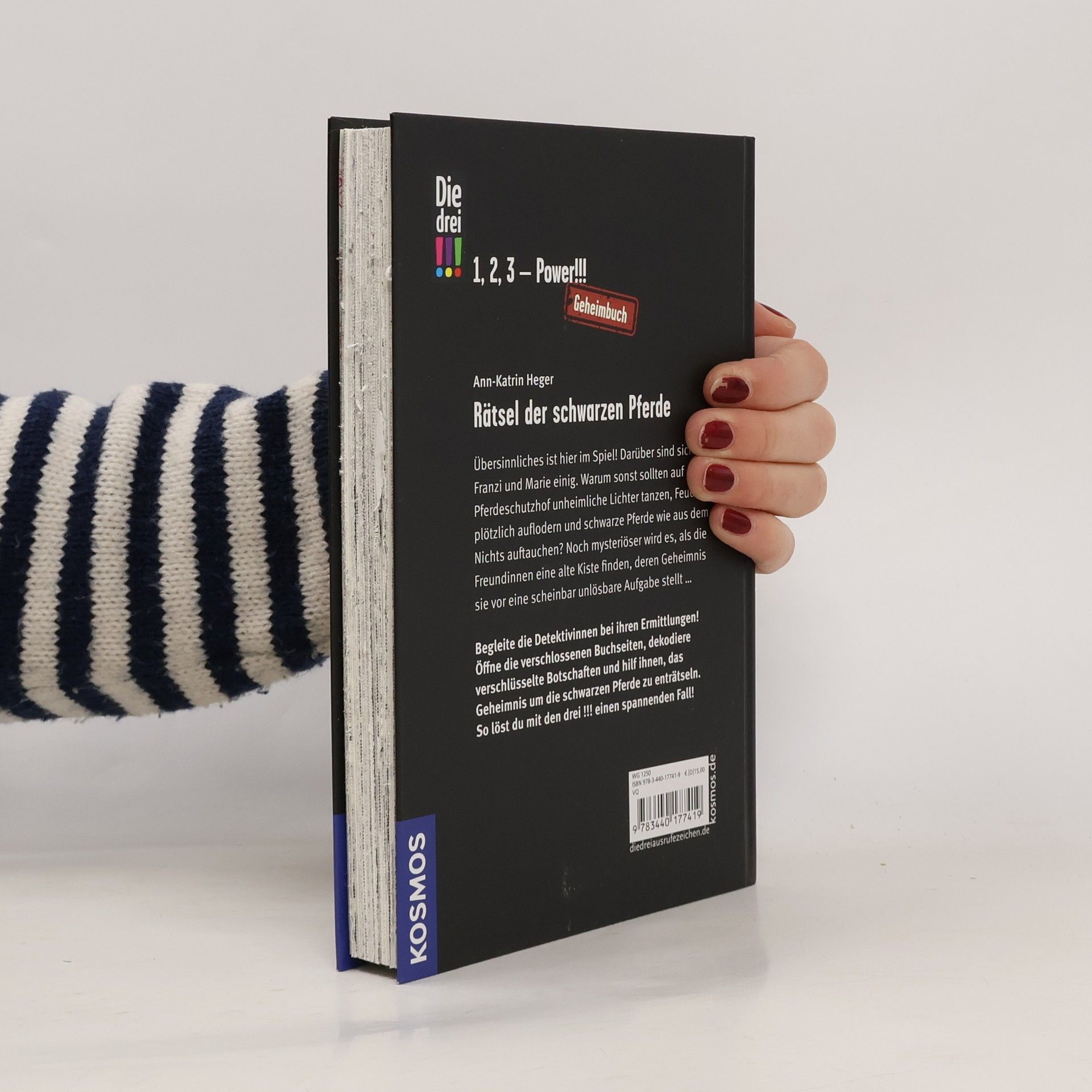 Pferde, die tanzen? Woher kommen die unheimlichen Lichter? Auf dem Pferdeschutzhof geschehen nachts seltsame Dinge. Doch Kim, Marie und Franzi sind sich bald einig: Das ist alles fauler Zauber, oder? Wer oder was treibt dann sein Unwesen auf dem Hof? Ein neuer Band der „Geheimbuch“-Reihe, in dem Dämonenpferde auftauchen und mysteriöse Feuer entfachen. Was befindet sich in der rätselhaften Kiste? Die drei !!! brauchen die Mithilfe der Leserinnen und Leser. Verschlossene Buchseiten öffnen, verschlüsselte Botschaften entziffern, knifflige Rätsel lösen, Überraschungen entdecken: ein Krimifall der Extraklasse!