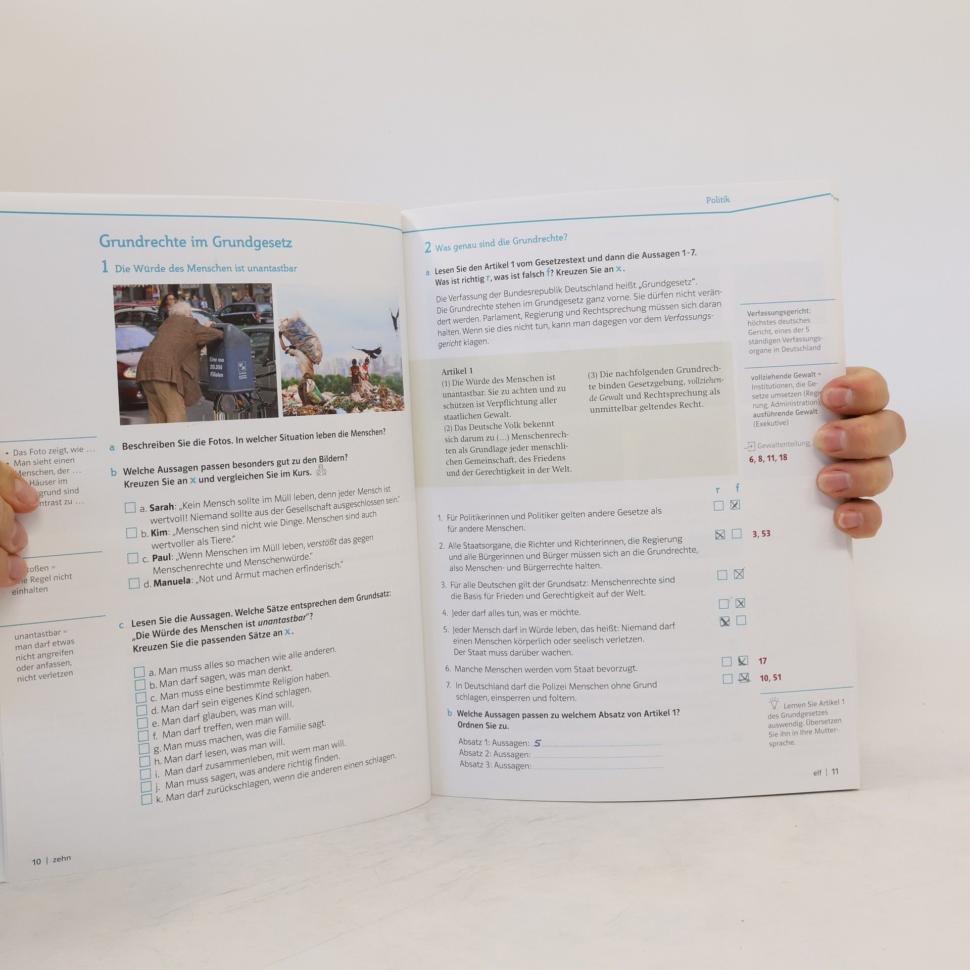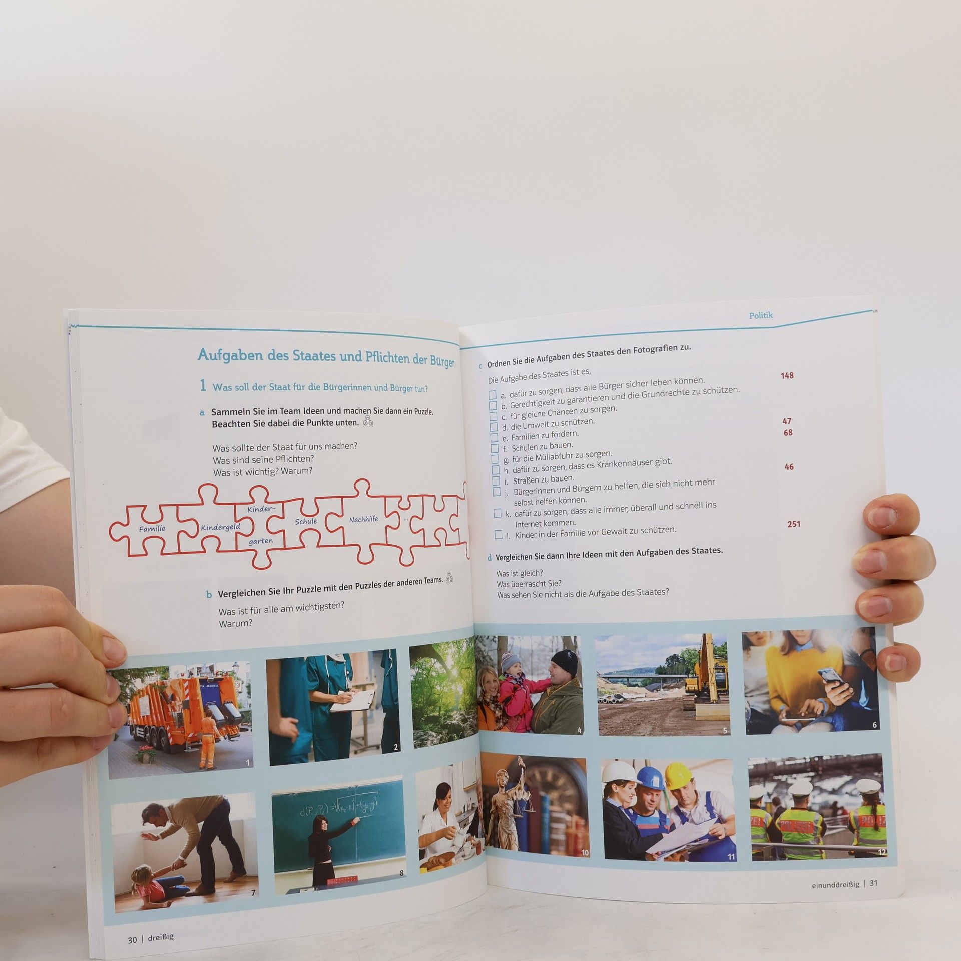 Der Orientierungskurs 100 Stunden Deutschland ist für alle Orientierungskurse geeignet und kurstragend einsetzbar. Er ist auf das aktuelle Curriculum des Bundesamtes für Migration und Flüchtlinge abgestimmt. Der Kurs vermittelt abwechslungsreich und anschaulich Wissen zu den drei Modulen: Politik in der Demokratie, Geschichte und Verantwortung, Mensch und Gesellschaft. Außerdem regt er zur Diskussion über erworbene und aktuelle Deutschlandbilder sowie über die Herausforderungen im Rahmen der europäischen Integration an. 100 Stunden Deutschland bietet Informationen und Tipps zur Vorbereitung auf den Test Leben in Deutschland . Im Buch wird auf die passenden Prüfungsfragen verwiesen.