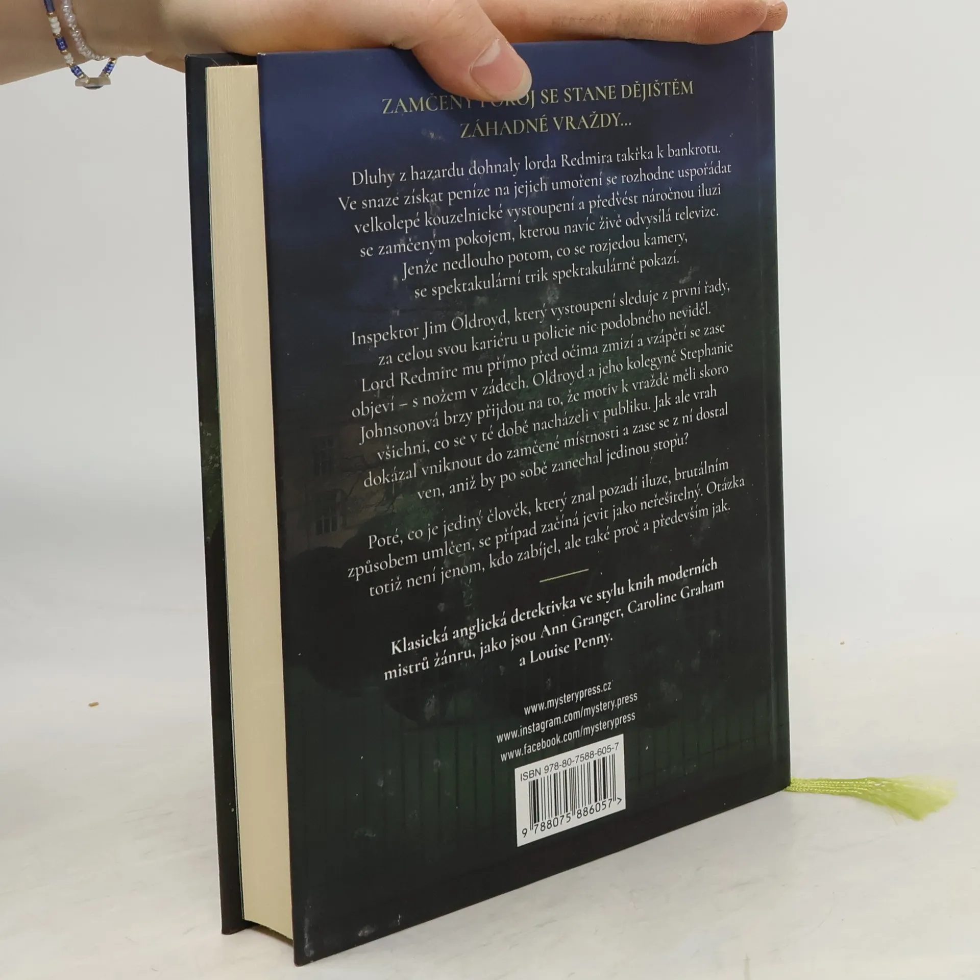 ZAMČENÝ POKOJ SE STANE DĚJIŠTĚM ZÁHADNÉ VRAŽDY Dluhy z hazardu dohnaly lorda Redmira takřka k bankrotu. Ve snaze získat peníze na jejich umoření se rozhodne uspořádat velkolepé kouzelnické vystoupení a předvést náročnou iluzi se zamčeným pokojem, kterou navíc živě odvysílá televize.Jenže nedlouho potom, co se rozjedou kamery, se spektakulární trik spektakulárně pokazí. Inspektor Jim Oldroyd, který vystoupení sleduje z první řady, za celou svou kariéru u policie nic podobného neviděl. Lord Redmire mu přímo před očima zmizí a vzápětí se zase objeví – s nožem v zádech. Oldroyd a jeho kolegyně Stephanie Johnsonová brzy přijdou na to, že motiv k vraždě měli skoro všichni, co se v té době nacházeli v publiku. Jak ale vrah dokázal vniknout do zamčené místnosti a zase se z ní dostal ven, aniž by po sobě zanechal jedinou stopu? Poté, co je jediný člověk, který znal pozadí iluze, brutálním způsobem umlčen, se případ začíná jevit jako neřešitelný. Otázka totiž není jenom, kdo zabíjel, ale také proč a především jak. ____ Klasická anglická detektivka ve stylu knih moderních mistrů žánru, jako jsou Ann Granger, Caroline Graham a Louise Penny.