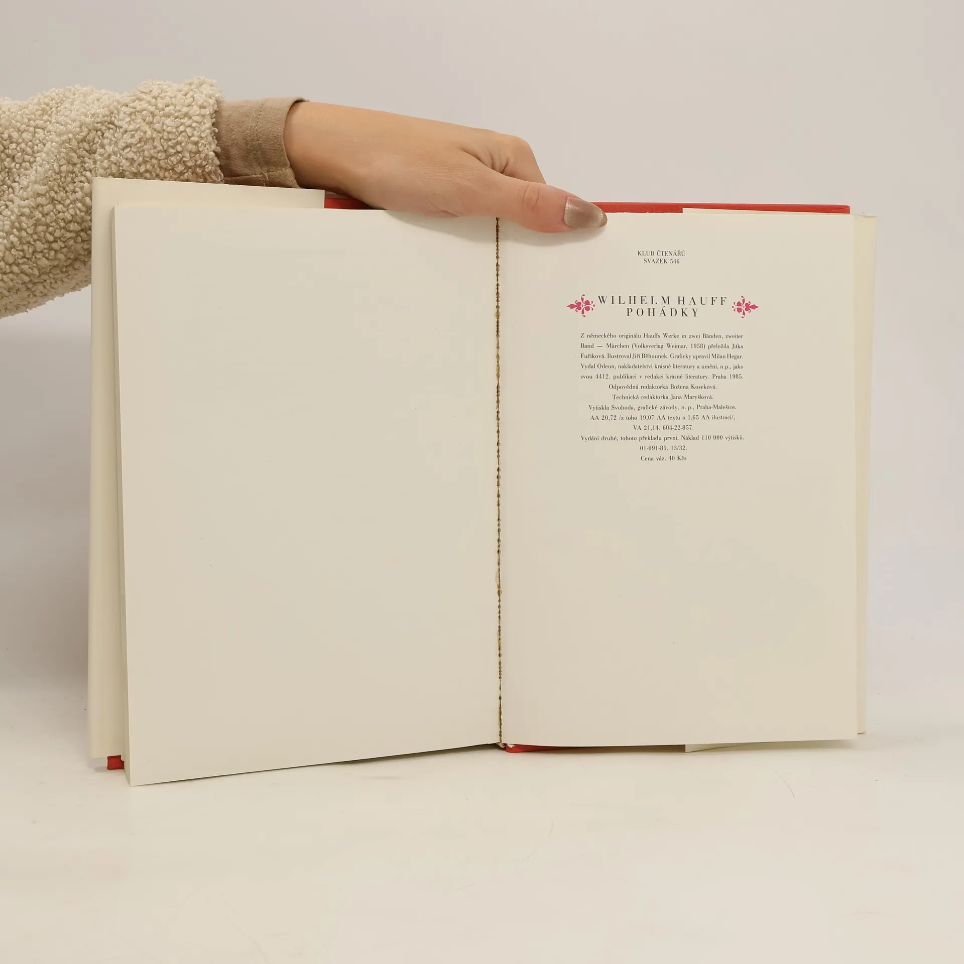 Pohádky německého romantického spisovatele, v nichž se dobrodružný a fantastický prvek mísí s rozmarným, humorným. Obsahuje všechny tři almanachy: Karavana (Die Karawane, 1826) Šejk z Alexandrie a jeho otroci (Der Scheik von Alessandria und seine Sklaven, 1827) Hospoda ve Špesartu (Das Wirsthaus im Spessart, 1828) přeloženo z vydání Volksverlag Weimar, 1958 2. vydání, tohoto překladu první Pohádky: Karavana-Příběh o kalifu čápovi, Strašidelná loď, Příběh o uťaté ruce, Osvobození Fátimy, Malý Muk, Nepravý princ. Šejk z Alexandrie a jeho otroci-Trpaslík Nos, Abner, žid, který nic nevěděl, Člověk-opice, Osudy Almansorovy. Hospoda ve Špesartu-Pověst o jelení zlatce, Chladné srdce, Saidovy osudy, Steenfollská jeskyně, Chladné srdce II. Cena knihy v čase vydání: 40.- Kčs.