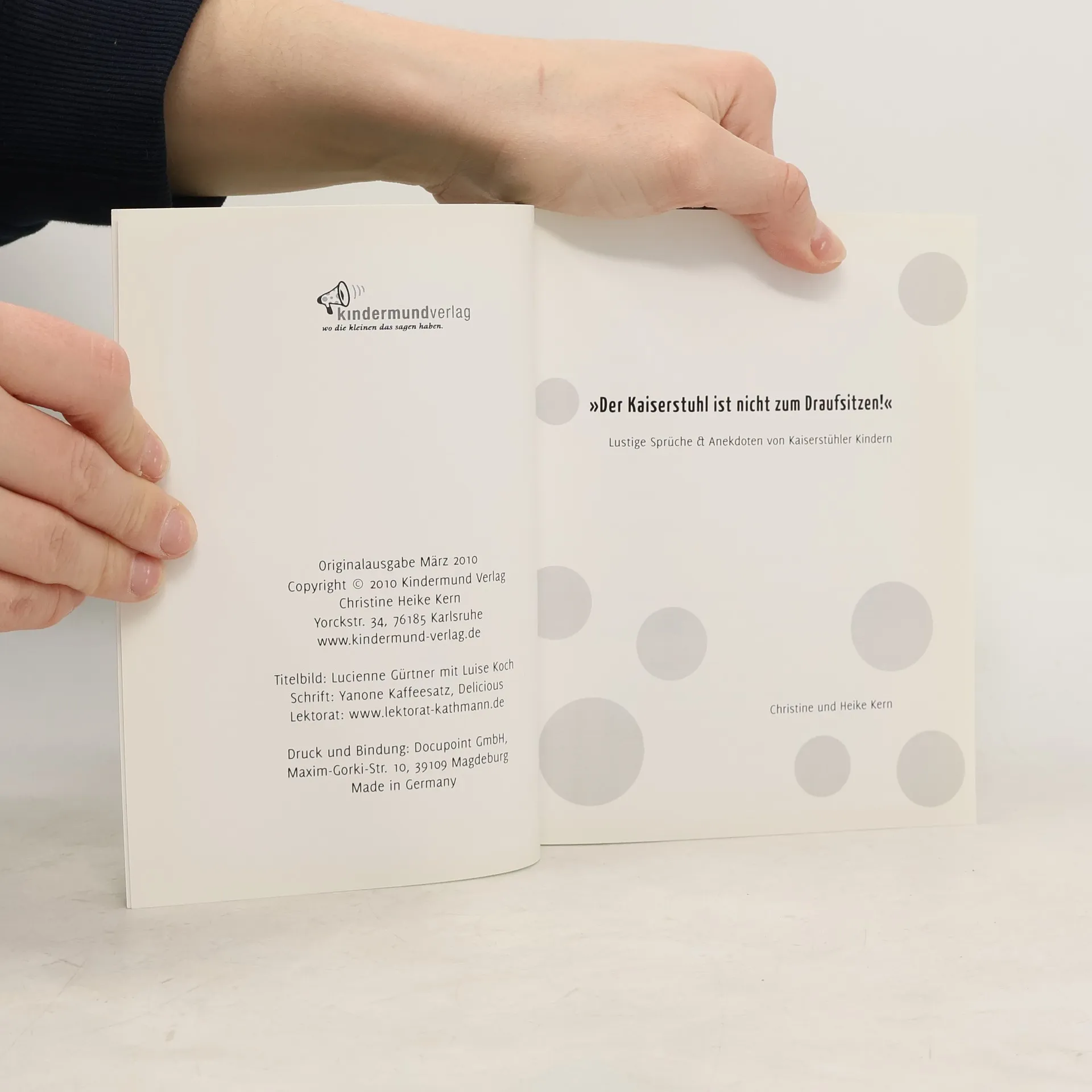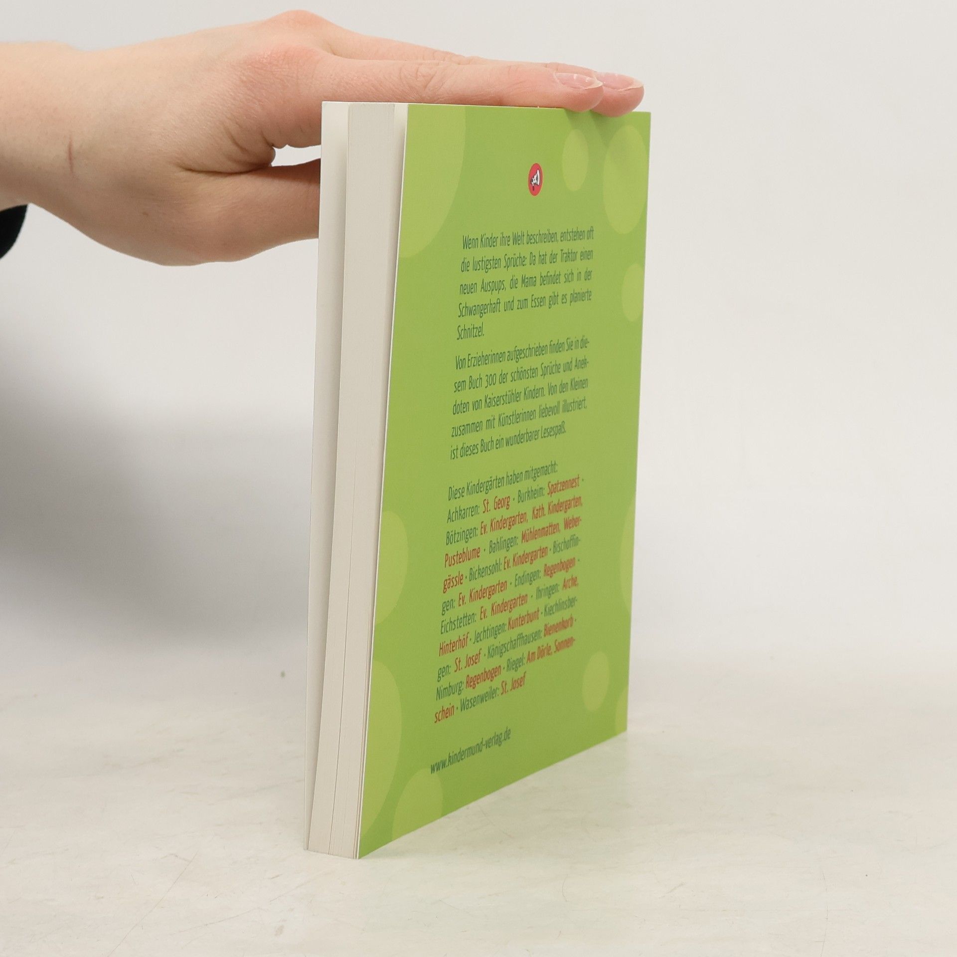 Dieses Buch ist randvoll mit Sprachpirouetten, Witz und Wahrheiten kleiner Kaiserstühler Sprücheklopfer: „Der Kaiserstuhl ist nicht zum Draufsitzen“. Es enthält lustige Sprüche von Kindergartenkindern aus 19 Einrichtungen, die über zwei Jahre gesammelt wurden. Heike Kern, die ehemalige Kindergartenleiterin in Eichstetten, hat zusammen mit ihrer Tochter Christine ein liebevoll gestaltetes Werk geschaffen. Die Illustrationen stammen von Kaiserstühler Künstlerinnen, die gemeinsam mit den Kindern gemalt haben. Insgesamt sind 365 Sprüche versammelt: lustige, nachdenkliche, neunmalkluge, freche und einige alemannische. In den Kaiserstühler Kindergärten wird auch Dialekt gesprochen, was manchmal zu amüsanten Missverständnissen führt. Heike Kern, ursprünglich aus Norddeutschland, erzählt von ihren Herausforderungen mit den Kindern, die den Herbst bereits vor dem offiziellen Datum begannen. Um das Buch lebendig zu gestalten, gibt es 18 Illustrationen, die die Kreativität von großen und kleinen Künstlern zeigen. Eine der beteiligten Künstlerinnen, Angelique Eckstein, fand die Idee sofort ansprechend und startete mit den Burkheimer Kindern umgehend die Malaktionen. Die Ergebnisse verdeutlichen, dass die Sprachkunst der Kinder ebenso einzigartig ist wie ihre Sicht auf die Welt, die sich in den Bildideen widerspiegelt.