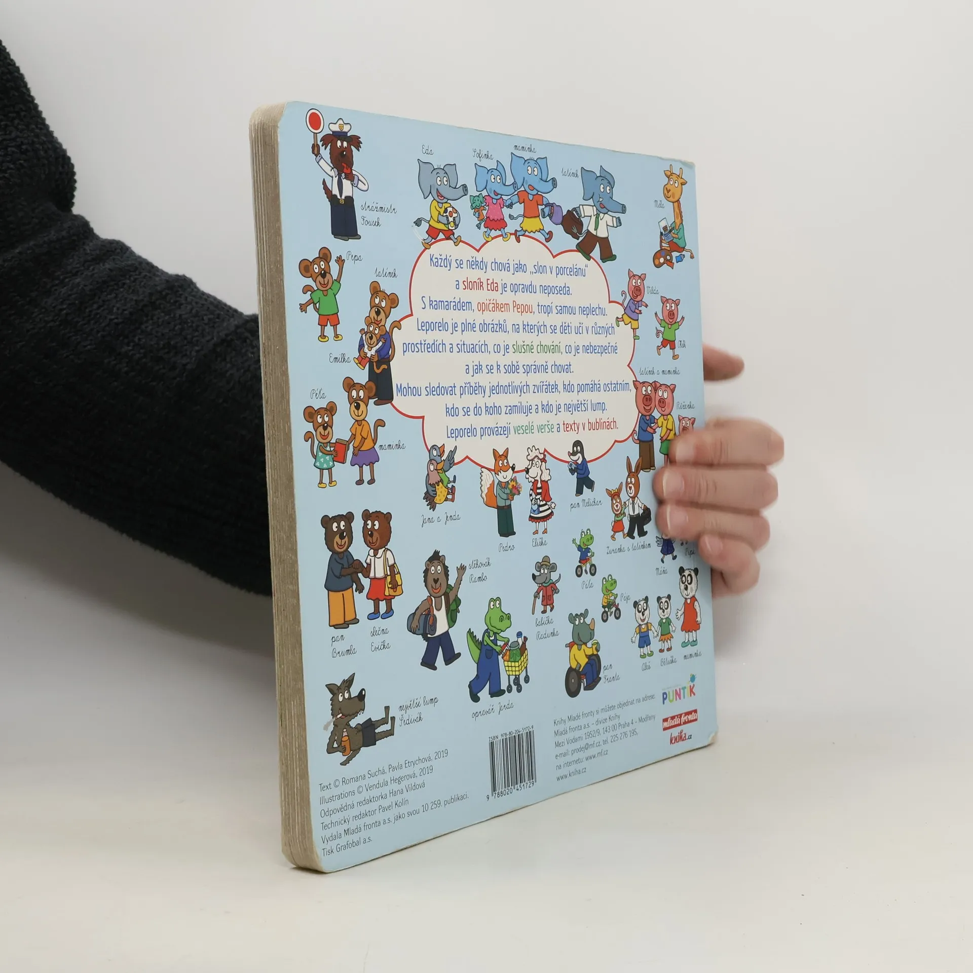 Každý se někdy chová jako ,,slon v porcelánu“ a sloník Eda je opravdový neposeda. S kamarádem, opičákem Pepou, tropí samou neplechu. Leporelo je plné obrázku, na kterých se děti učí v různých prostředích a situacích, co je slušné chování, co je nebezpečné a jak se k sobe správně chovat. Mohou sledovat příběhy jednotlivých zvířátek, kdo pomáhá ostatním, kdo se do koho zamiluje a kdo je největší lump. Leporelo provázejí veselé verše a texty v bublinách.