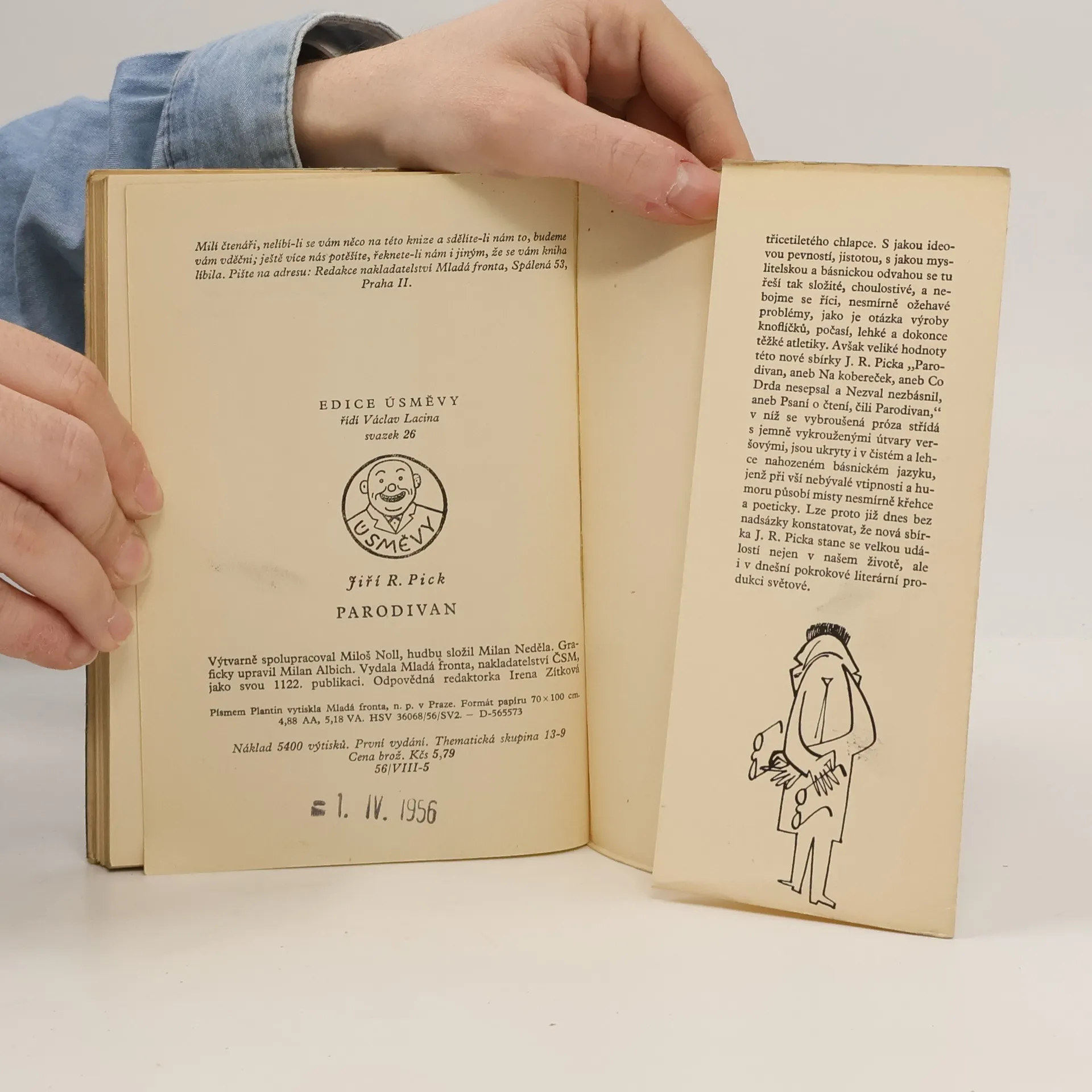 Knížečka, vydaná r. 1957 v MF edici Úsměvy, s mnoha podtituly: Parodivan aneb Na kobereček aneb Co Drda nesepsal a Nezval nezbásnil aneb Psaní o čtení. Minidílka parodující styl Machonina, Štolly, Kohouta, Floriana, Řezáče, Drdy, Pujmanové, Kožíka a mnoha dalších soudobých velikánů české literatury. Tematické celky: Soustruh ve verši i v próze, Rozbor Perníkové chaloupky, Měsíce - thema žhavé současnosti, Červená Karkulka v zrcadle současné kritiky, Sport a hry, Tisk, Rozhlas, drama Továrna na knoflíčky. V tiráži je uveden i autor hudby (Milan Neděla), jehož notové zápisy písní "Byl to vzorný traktorista, carára bum..", "Proč ta kráva v širém poli tolik bučí ..." , "Když jsem včera vyfáral ..." a dalších jsou součástí této nadačasové sbírky.