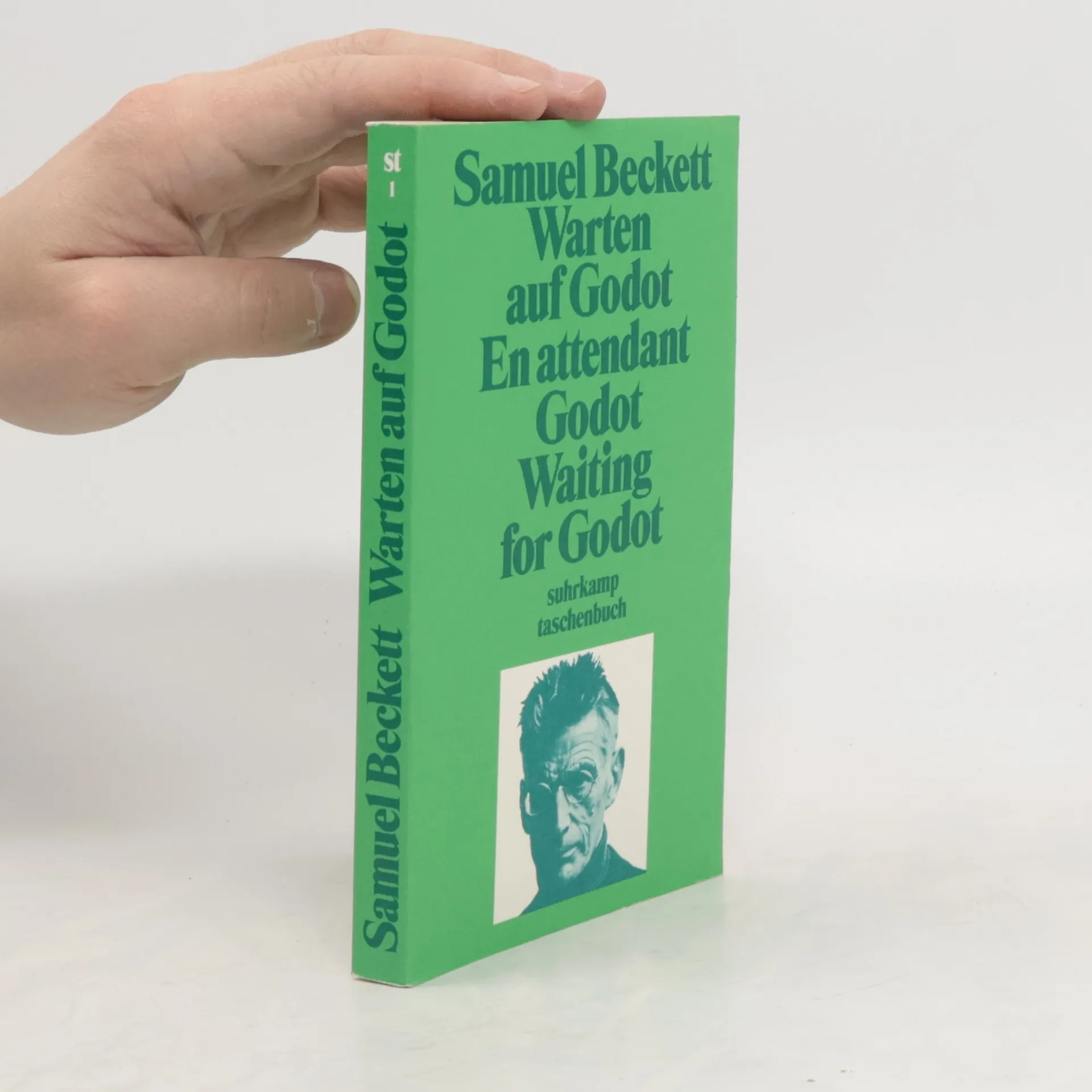 Über dieses Jahrhundertstück des irischen Nobelpreisträgers Samuel Beckett schrieb der Philosoph Günther Anders: »Der Clown ist von einer Traurigkeit, die, da sie das traurige Los der Menschen überhaupt abspiegelt, die Herzen all Menschen solidarisiert und durch diese ihre Solidarisierung erleichtert … Die Farce scheint zum Refugium der Menschenliebe geworden zu sein: die Komplizenhaftigkeit der Traurigen zum letzten Trost. Und weiß auch die Tröstung nicht, warum sie tröstet und auf welchen Godot sie vertröstet – sie beweist, daß Wärme wichtiger ist als Sinn; und daß es nicht der Metaphysiker ist, der das letzte Wort behalten darf, sondern nur der Menschenfreund.« Dreisprachige Ausgabe: Auf den Doppelseiten findet sich auf der linken Seite in der linken Spalte der französische, in der rechten Spalte der englische Originaltext und auf der rechten Seite – etwas größer gedruckt und über die gesamte Seitenbreite – die Übersetzung ins Deutsche.