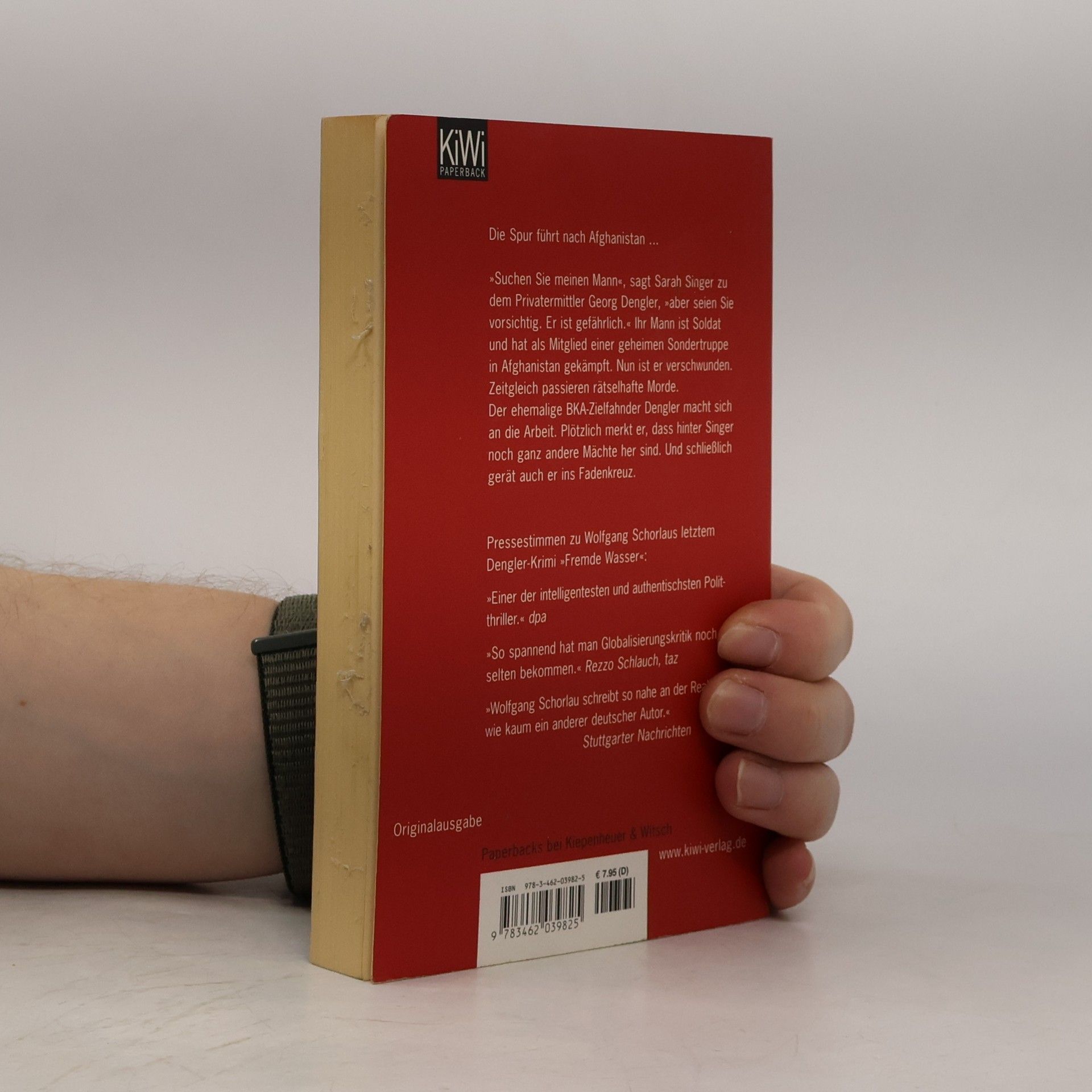 Die Spur führt nach Afghanistan – Georg Denglers vierter und gefährlichster Auftrag »Suchen Sie meinen Mann«, sagt Sarah Singer und zieht verzweifelt an ihrer Zigarette, als wäre diese Kippe die letzte auf der Welt. »Mein Mann ist krank – und gefährlich.« Viel mehr hat sie zunächst nicht zu bieten. Georg Dengler, privater Ermittler aus Stuttgart und ehemaliger Zielfahnder des Bundeskriminalamtes, nimmt ihren Auftrag an. Er ist fasziniert von der blonden Frau. Und er glaubt, ihren vermissten Mann zu kennen. Sein Bild erinnert ihn an das große Drama seiner Kindheit, das ihn selbst beinahe getötet und seine Familie für immer ruiniert hätte. Sarah Singers Mann ist Berufssoldat. Nach geheimen Einsätzen ist er aus Afghanistan nach Deutschland zurückgekehrt, traumatisiert und zutiefst erschüttert. Nach kurzer Zeit verschwindet er spurlos. Und einige Morde geschehen. Als Georg Dengler sich an die Arbeit macht, erfährt er, dass Hans-Jörg Singer noch von ganz anderen Instanzen gesucht wird. Und plötzlich steht er mächtigen Interessen im Weg. »Einer der intelligentesten und authentischsten deutschen Politthriller« dpa über »Fremde Wasser« Alle Fälle von Georg Dengler: Die blaue Liste Das dunkle Schweigen Fremde Wasser Brennende Kälte Das München-Komplott Die letzte Flucht Am zwölften Tag Die schützende Hand Der große Plan Kreuzberg Blues Die Bücher erzählen eigenständige Fälle und können unabhängig voneinander gelesen werden.