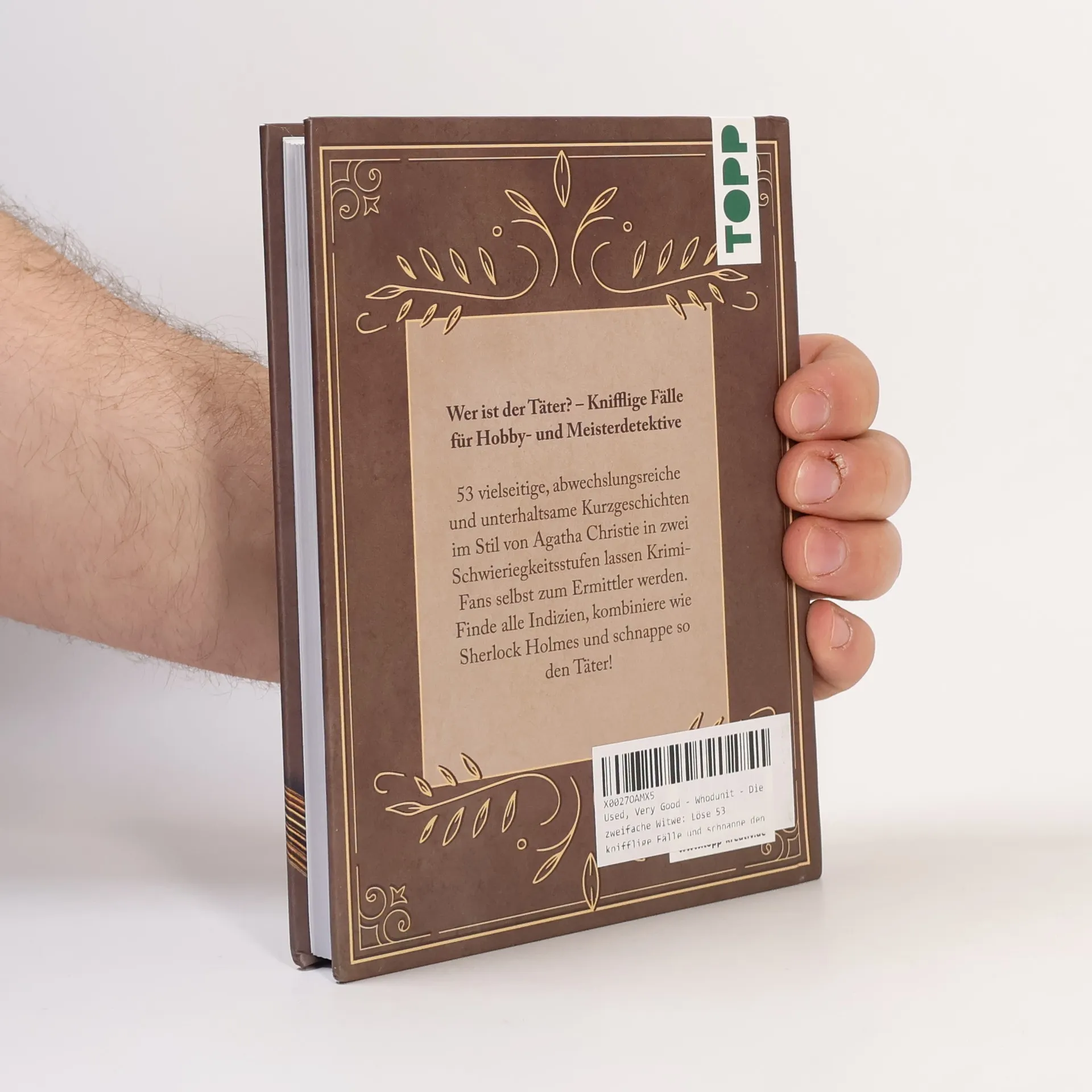 Wer ist der Täter? – Knifflige Fälle für Hobby- und Meisterdetektive 53 vielseitige, abwechslungsreiche und kurzweilige Kurzgeschichten im Stil von Agatha Christie lassen Krimi-Fans selbst zum Ermittler werden. Finden Sie alle Indizien, kombinieren Sie wie Sherlock Holmes und schnappen Sie so den Täter! „Whodunit - Die zweifache Witwe“ enthält Kurzgeschichten in zwei Schwierigkeitsstufen und ist mit praktischem, handtaschentauglichem Format und kurzen Geschichten perfekt auch für unterwegs.