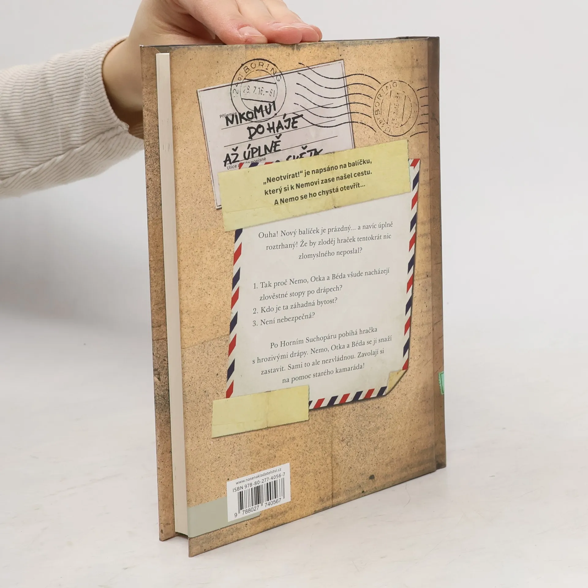 Humorný příběh tří kamarádů, na které v balíčku čeká další tajemný tvor. Nemo, Otka a Béda jsou bezradní. Objeví se nový balíček, ale je prázdný! Navíc úplně roztrhaný! Že by zloděj hraček tentokrát nic zlomyslného neposlal? Tak proč Nemo, Otka a Béda všude nacházejí zlověstné stopy po drápech? Nakladatelská anotace. Kráceno.