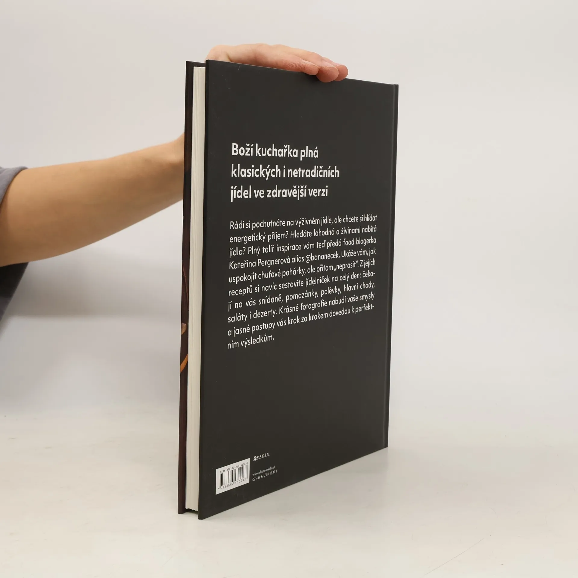 Rádi si pochutnáte na výživném jídle, ale chcete si hlídat energetický příjem? Hledáte lahodná a živinami nabitá jídla? Plný talíř inspirace vám teď předá food blogerka Kateřina Pergnerová alias @bananecek. Ukáže vám, jak uspokojit chuťové pohárky, ale přitom „neprasit“. Z jejích receptů si navíc sestavíte jídelníček na celý den: čekají na vás snídaně, pomazánky, polévky, hlavní chody, saláty i dezerty. Krásné fotografie nabudí vaše smysly a jasné postupy vás krok za krokem dovedou k perfektním výsledkům.