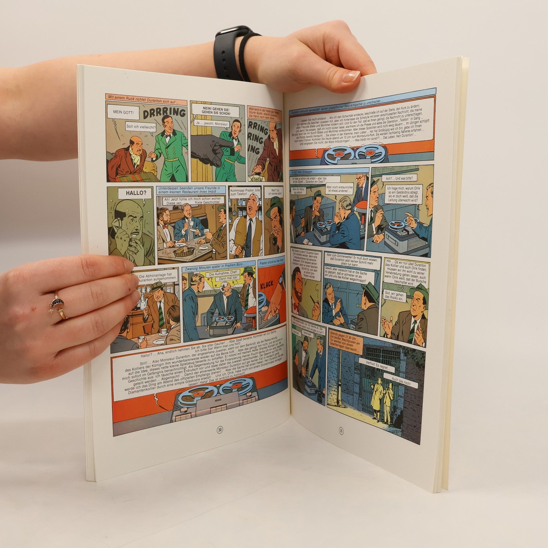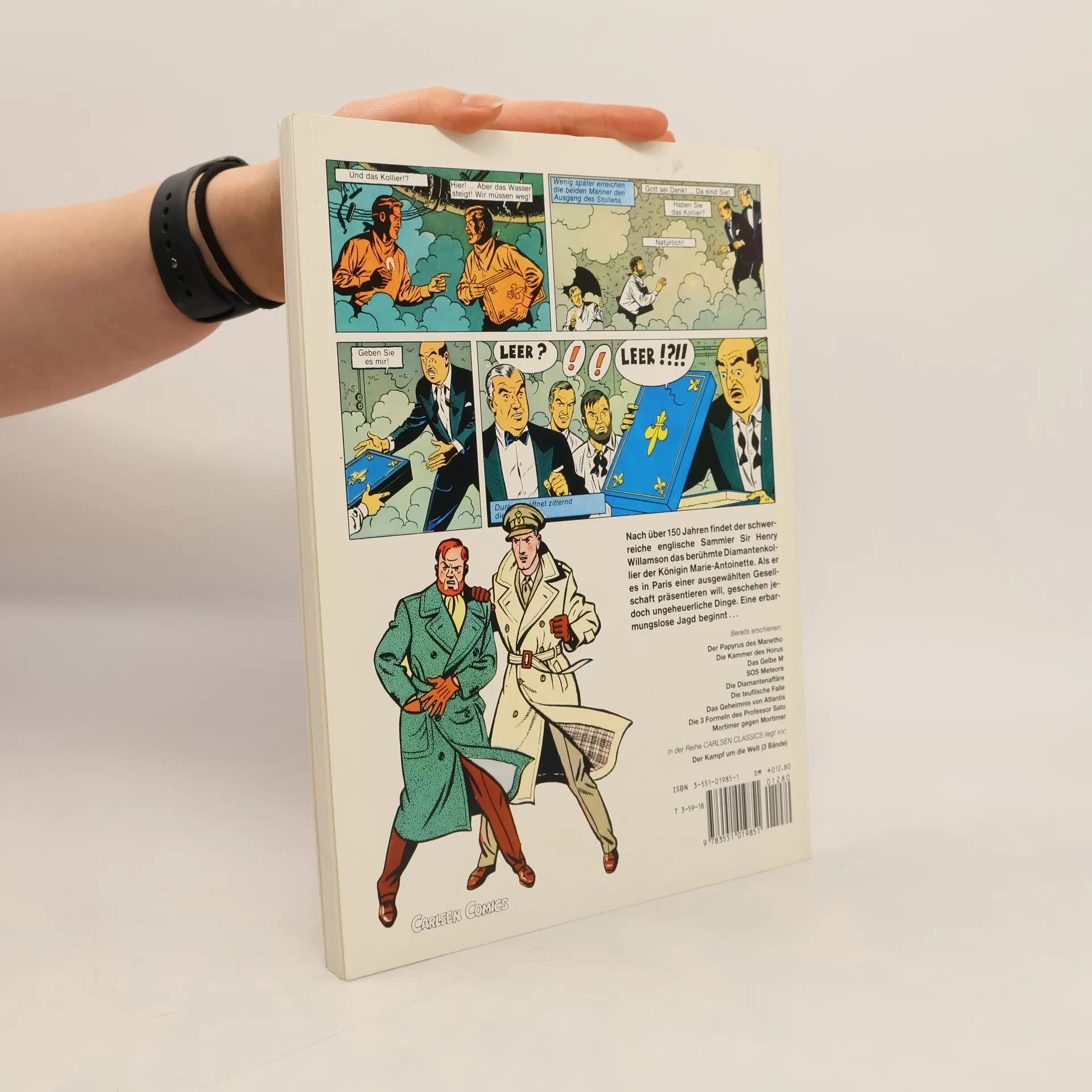 Ein dreister Diamantenraub Nach über 150 Jahren findet der englische Sammler Sir Henry Williamson das berühmte Diamantenkollier der Königin Marie-Antoinette. Als er es in Paris einer ausgewählten Gesellschaft präsentieren will, geschieht eine Katastrophe! Meisterdieb Olrik lässt den Tresor, in dem der Schmuck aufbewahrt wird, kurzerhand im Erdboden verschwinden und macht sich mit den Juwelen auf und davon. Blake und Mortimer heften sich an seine Fersen, und es beginnt eine Jagd durch die Katakomben von Paris. Die Serie "Blake und Mortimer" Die Serie um die beiden Briten Hauptmann Francis Blake und Professor Philip Mortimer gehört zu den besten und erfolgreichsten Reihen für erwachsene Comicleser. Mit dem Charme und dem Duktus der 1950er Jahre entführt sie die Leser in spannende und manchmal mystische Welten. Gerade diese Mischung aus realer Geschichte und Elementen aus Mythologie, Science-Fiction und Thriller macht die Faszination aus. Wenn diese Melange von zwei echten britischen Gentlemen dargereicht wird, muss man nur noch Hut und Mantel an der Garderobe abgeben und sich in den bequemen Sessel eines Londoner Clubs sinken lassen, um vollends in die Serie einzutauchen.