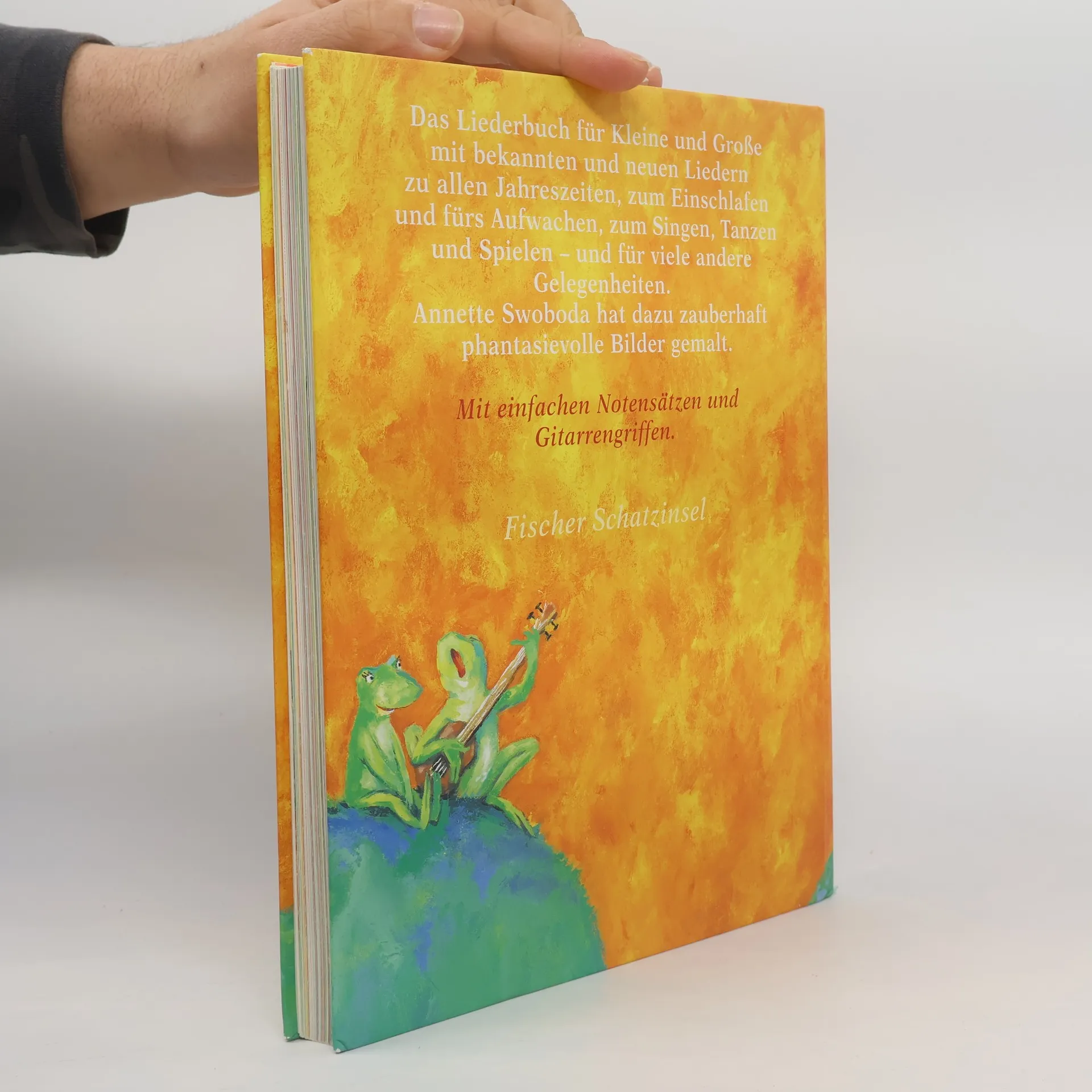 Das Liederbuch für Kleine und Große mit Liedern zu allen Jahreszeiten, zum Tanzen und Spielen, zum Einschlafen und fürs Aufwachen - und für viele andere Gelegenheiten. Die große Auswahl an bekannten und neuen Liedern macht, zusammen mit den phantasievollen Bildern von Annette Swoboda, dieses Liederbuch zu einem Hausbuch, das viele Kindergenerationen begleiten wird. Mit einfachen Notensätzen und Gitarrengriffen. Das neue Liederbuch zum Singen und Musizieren - mit vielen zauberhaften Bildern von Annette Swoboda. Annette Swoboda 1962 geboren, studierte nach dem Abitur Kunst in Frankreich und Grafikdesign in Mannheim und machte viele Reisen in der ganzen Welt. Seit 1988 illustriert sie Bücher für Kinder und Erwachsene.‹/p›