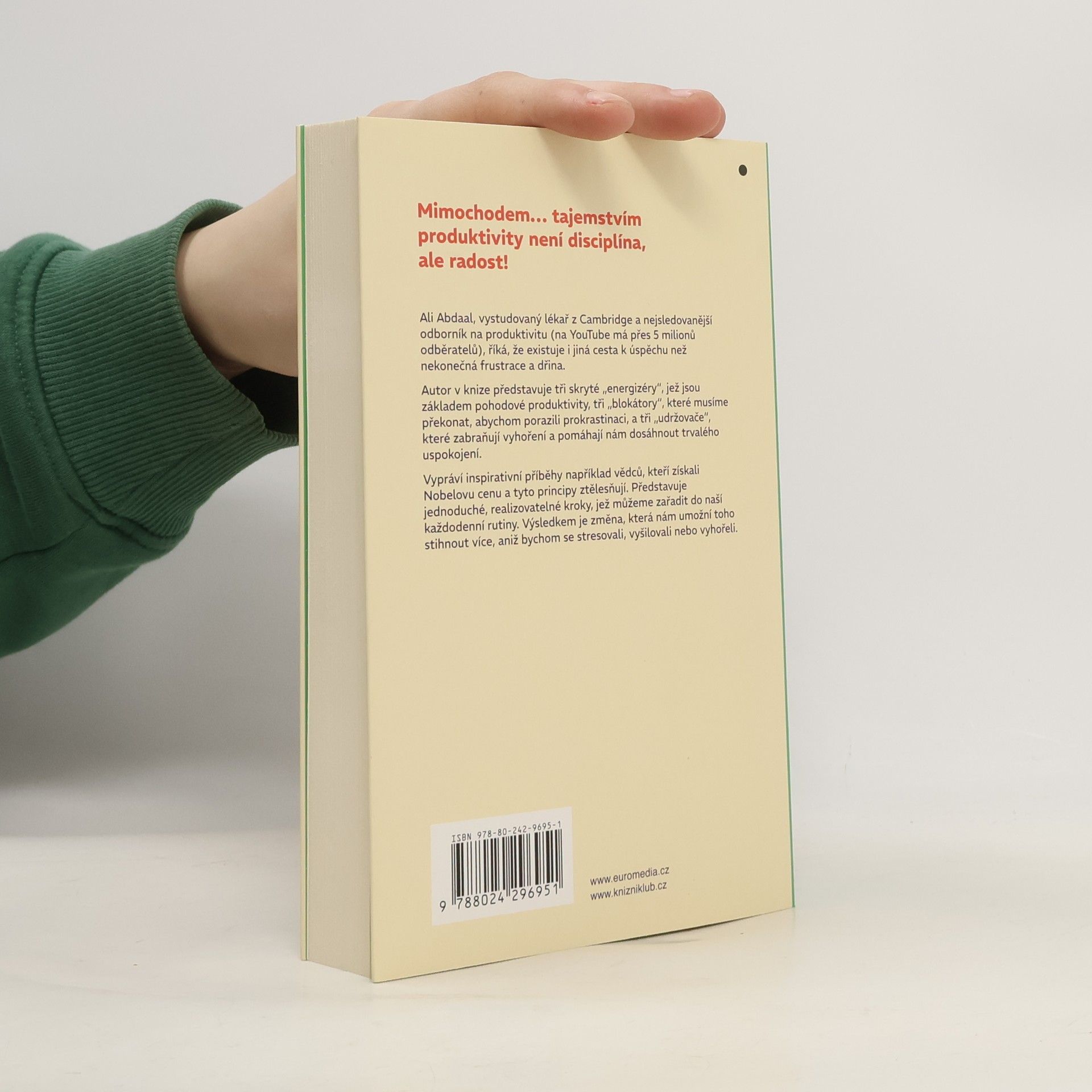 Tajemstvím produktivity není disciplína, ale radost. Ali Abdaal, vystudovaný lékař z Cambridge a nejsledovanější odborník na produktivitu (na YouTube má přes 5 milionů odběratelů) říká, že existuje i jiná cesta k úspěchu než nekonečná frustrace a dřina. Autor v knize představuje tři skryté "energizéry", které jsou základem pohodové produktivity, tři "blokátory", které musíme překonat, abychom porazili prokrastinaci, a tři "udržovače", které zabraňují vyhoření a pomáhají nám dosáhnout trvalého uspokojení. Vypráví inspirativní příběhy například vědců, kteří získali Nobelovu cenu a kteří tyto principy ztělesňují. Představuje jednoduché, realizovatelné kroky, které můžeme zařadit do naší každodenní rutiny. Výsledkem je změna, která nám umožní toho stihnout více, aniž bychom se stresovali, vyšilovali nebo vyhořeli.