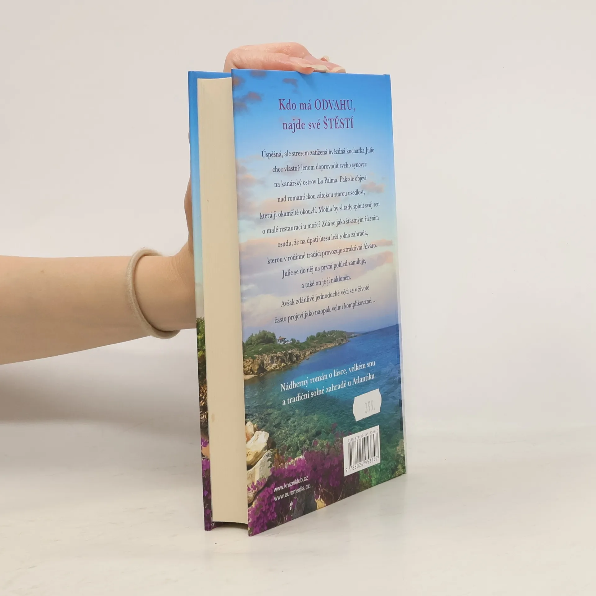 Román německé autorky o lásce a solné zahradě je prvním dílem chystané série. Úspěšná kuchařka Julie objeví na kanárském ostrově La Palma nad romantickou zátokou starou usedlost, která jí okamžitě učaruje. Mohla by si tady splnit svůj sen o malé restauraci u moře? Navíc na úpatí útesu leží solná zahrada, kterou v rodinné tradici provozuje atraktivní Álvaro. Julie se do něj na první pohled zamiluje, a také on je jí nakloněn. Avšak zdánlivě jednoduché věci se v životě často ukážou jako naopak velmi komplikované. Nakladatelská anotace.