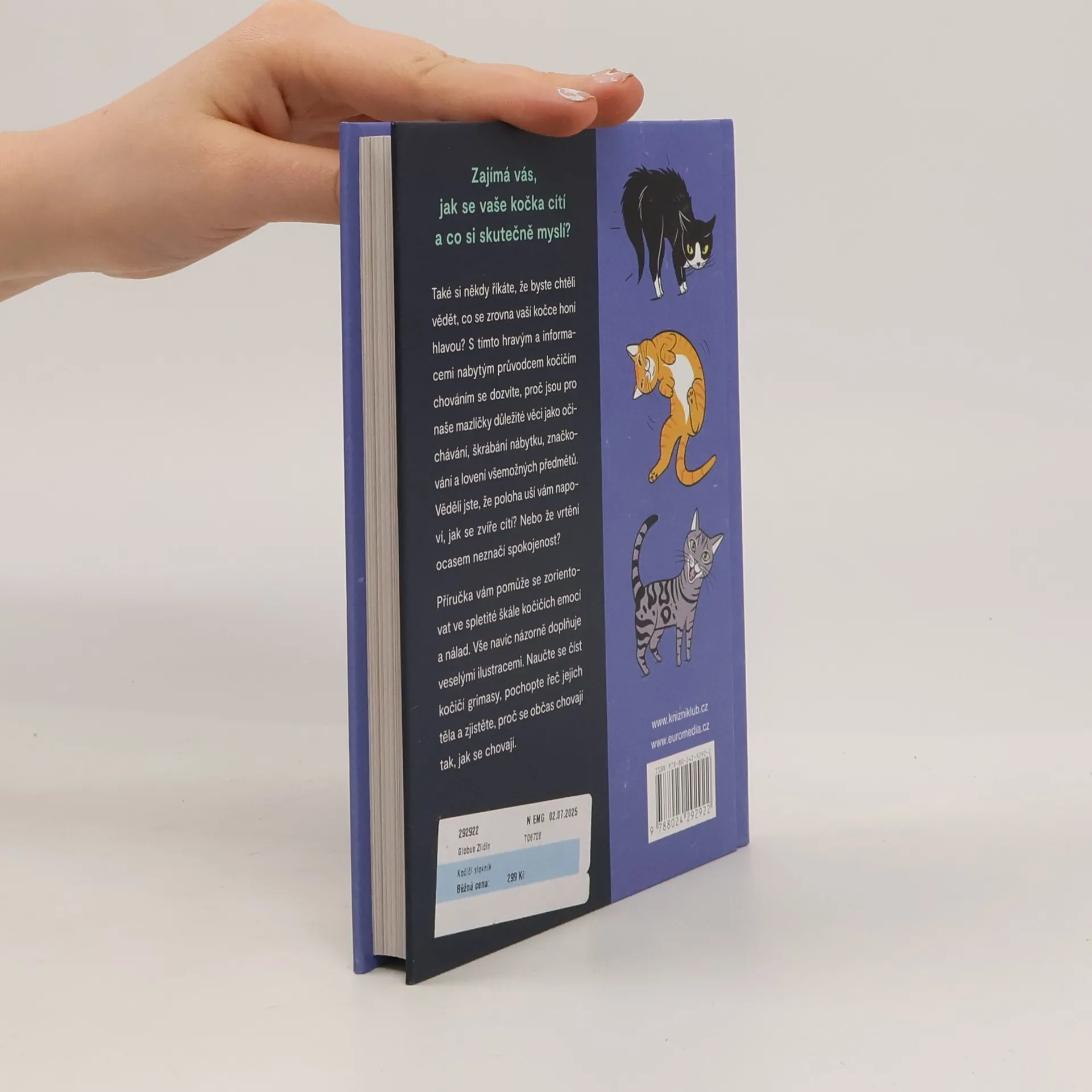 Názorná a humorná příručka pro všechny, co bydlí u své kočky! Zajímá vás, co se skrývá za řečí těla vašeho mazlíčka, nebo máte pocit, že vaše vzájemná komunikace občas drhne? A co když kočka vrtí ocasem, znamená to stejně jako u psa, že je veselá a chce si hrát? Jsou kočky opravdu zákeřná stvoření, anebo s nimi jen neumíme komunikovat? Autorka, umělkyně a majitelka koček Lili Chin vytvořila názorný Kočičí slovník pro všechny milovníky koček, kteří ještě neztratili smysl pro humor. Naučte se číst kočičí grimasy, pochopte řeč jejich těla a zjistěte, proč se občas chovají, tak jak se chovaj