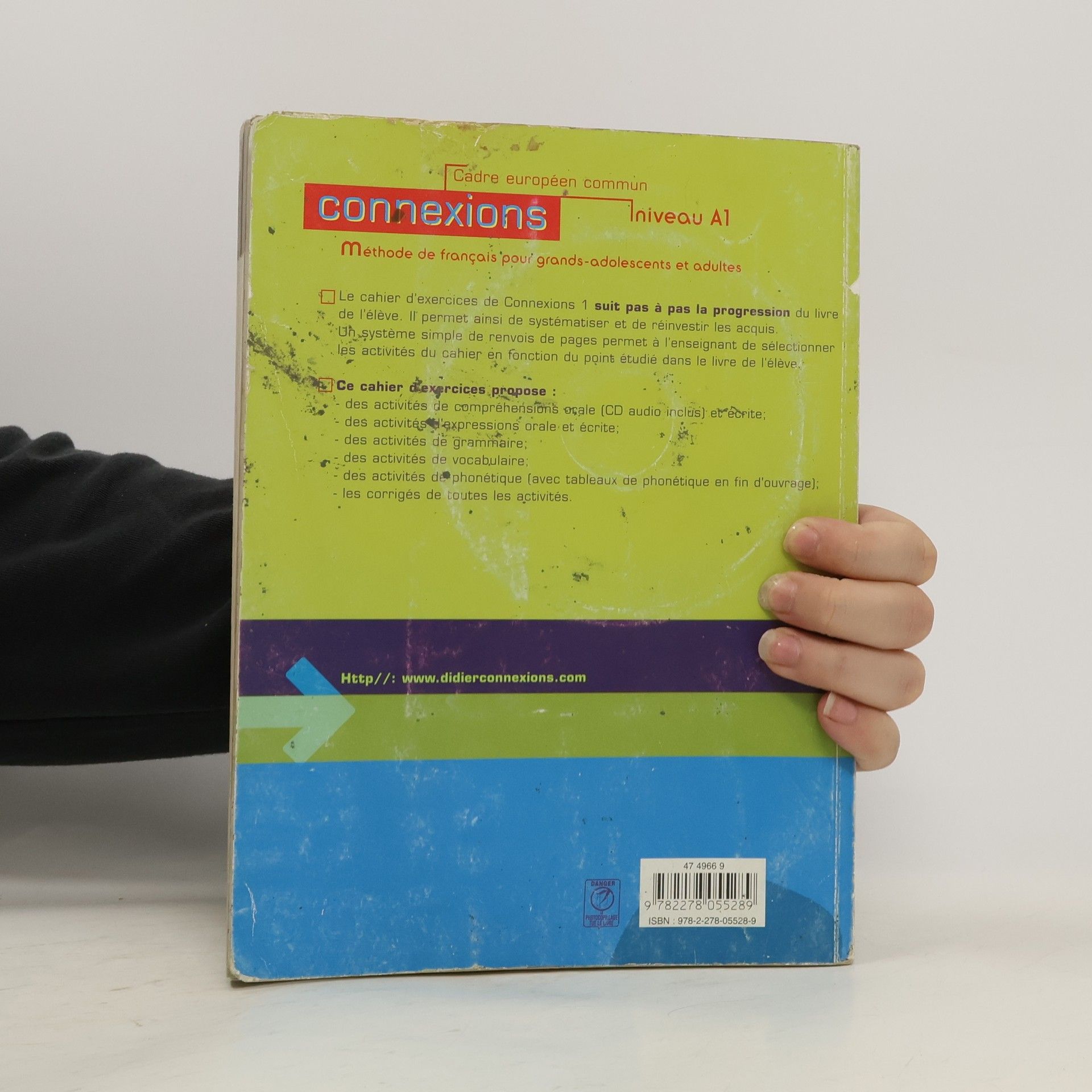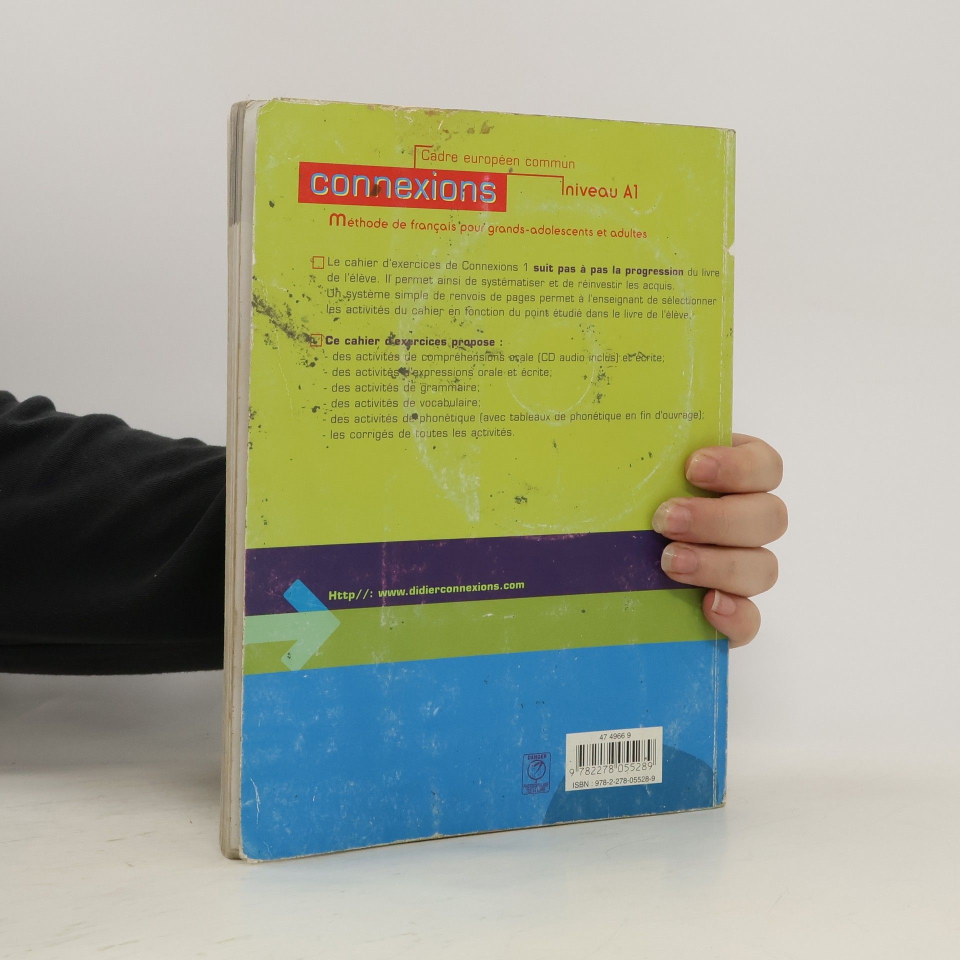 Méthode de français pour grands-adolescents et adultes. Le cahier d'exercices de Connexions 1 suit pas à pas la progression du livre de l'élève. Il permet ainsi de systématiser et de réinvestir les acquis. Un système simple de renvois de pages permet à l'enseignant de sélectionner les activités du cahier en fonction du point étudié dans le livre de l'élève. Ce cahier d'exercices propose : des activités de compréhensions orale (CD audio inclus) et écrite ; des activités d'expressions orale et écrite ; des activités de grammaire ; des activités de vocabulaire ; des activités de phonétique (avec tableaux de phonétique en fin d'ouvrage) ; les corrigés de toutes les activités.
