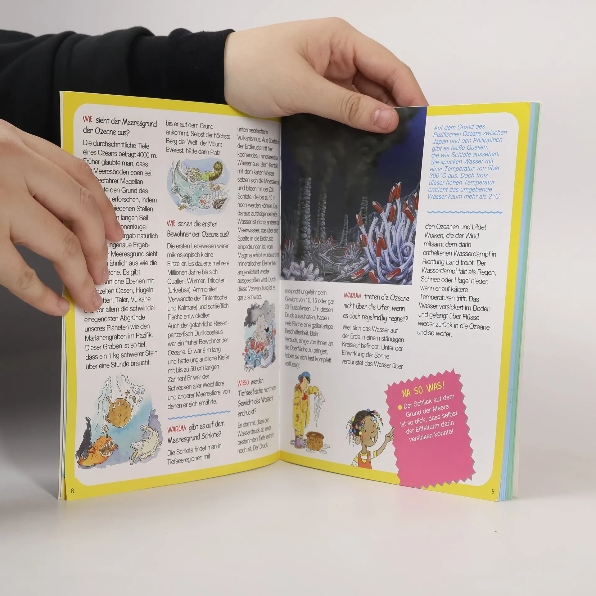 Dieses Buch greift unzählige spannende Fragen rund um das Meer auf und hält einfache und zugleich verblüffende Erklärungen bereit. In einem abwechslungsreichen Frage- und Antwort-Dialog und mit Hunderten von Illustrationen lernen (nicht nur) Kinder auf unterhaltsame Weise die Welt des Meeres kennen.