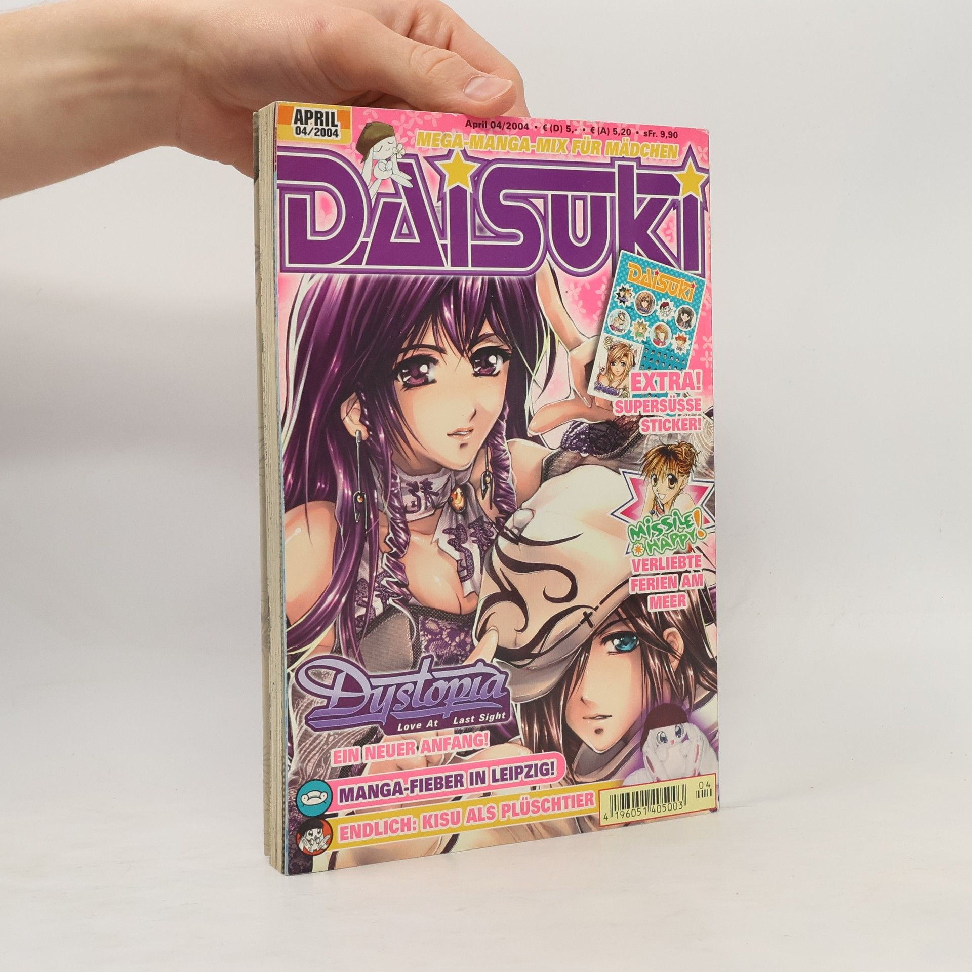 Unsere Frühlings- "DAISUKI 04/04" ist gespickt mit lauter blumigen und hasigen Themen. Um euch das Osterfest zu versüßen, haben wir wieder ein tolles Extra dazugelegt. Soviel sei verraten: Es handelt sich dabei um eine »haftende« Angelegenheit. Alle eure Lieblingsserien »Fruits Basket«, »Kare Kano«, »Missile Happy!«, »Skip Beat!«, »W Juliet« und natürlich »Dystopia« sind wieder dabei und hinterlassen mit ihren Abenteuern ganz bestimmt auch einen haftenden Eindruck.