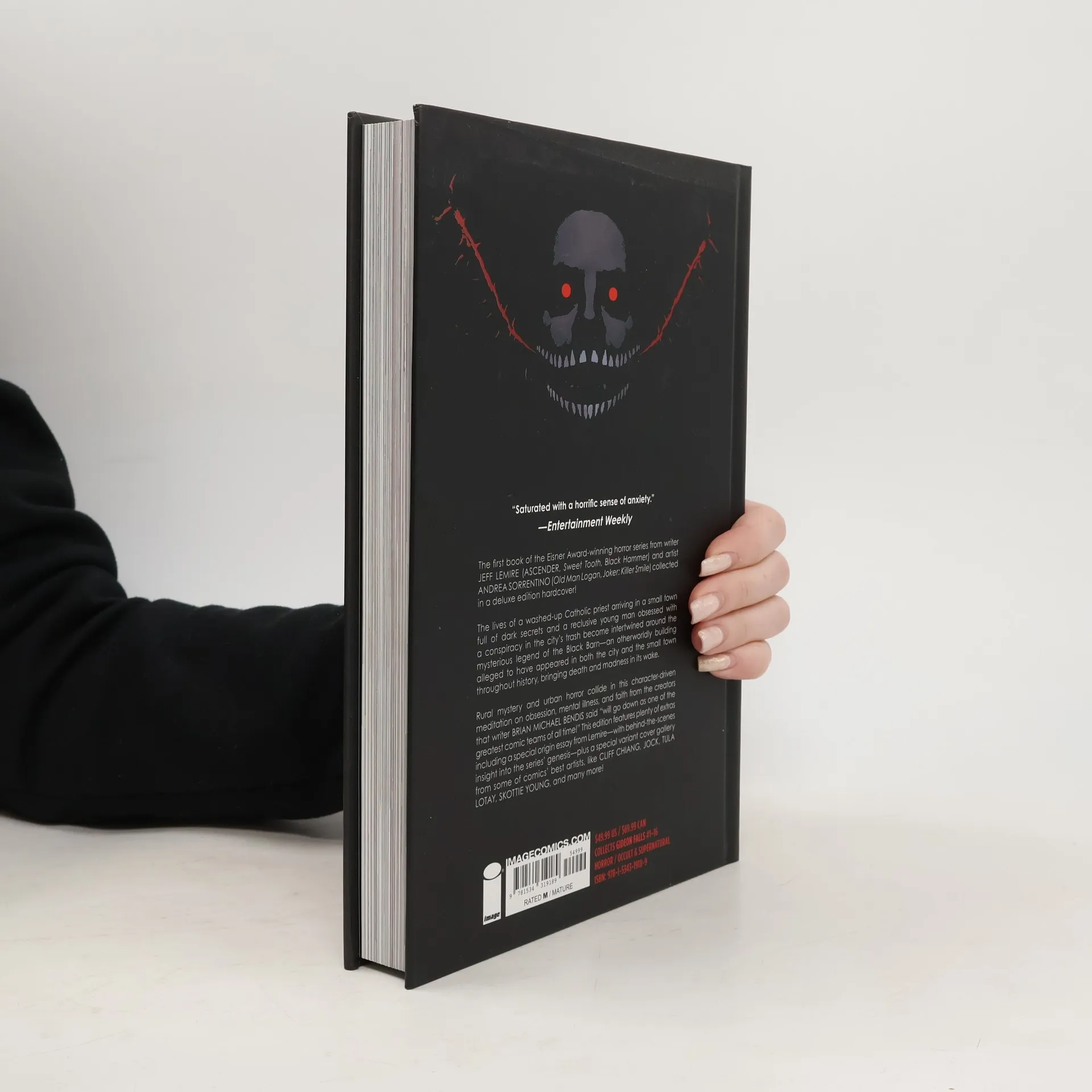 The first book of the Eisner award winning horror seriesfrom writer Jeff Lemire (Sweet Tooth, Black Hammer) and artist Andrea Sorrentino(Old Man Logan, Joker: Killer Smile) collected in a deluxe edition hardcover! The lives of a reclusive young man obsessedwith a conspiracy in the city's trash and a washed-up Catholic priest arrivingin a small town full of dark secrets become intertwined around the mysteriouslegend of The Black Barn―an otherworldly building alleged to have appearedin both the city and the small town throughout history, bringing death andmad-ness in its wake. Rural mystery and urbanhorror collide in this character-driven meditation on obsession, mental illness,and faith from the creators that writer Brian Michael Bendis said "will godown as one of the greatest comic teams of all time!" Also featuringplenty of "extras" including a variant cover gallery from some ofcomics' best artists, like Cliff Chiang, Jock, Tula Lotay, Skot-tie Young, andmany more! Collects issues#1-16