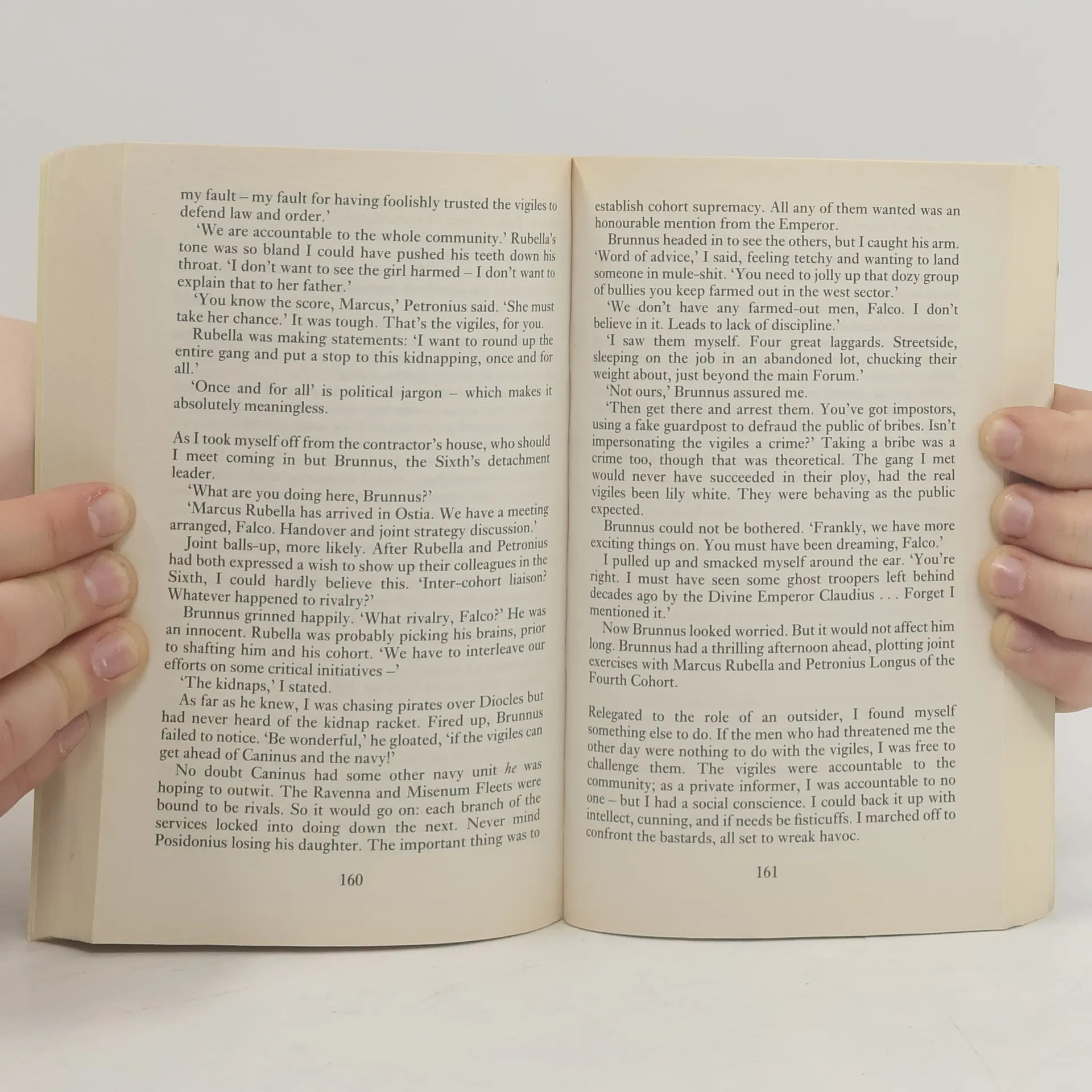 In the wealthy town of Ostia, Marus Didius Flaco appears to tbe enjoying a relaxing holiday. But when his girlfriend Helena arrives carrying a batch of old copies of the Daily Gazette, Falco is forced to admit to Petronius his real reasons for being there. (Back cover)