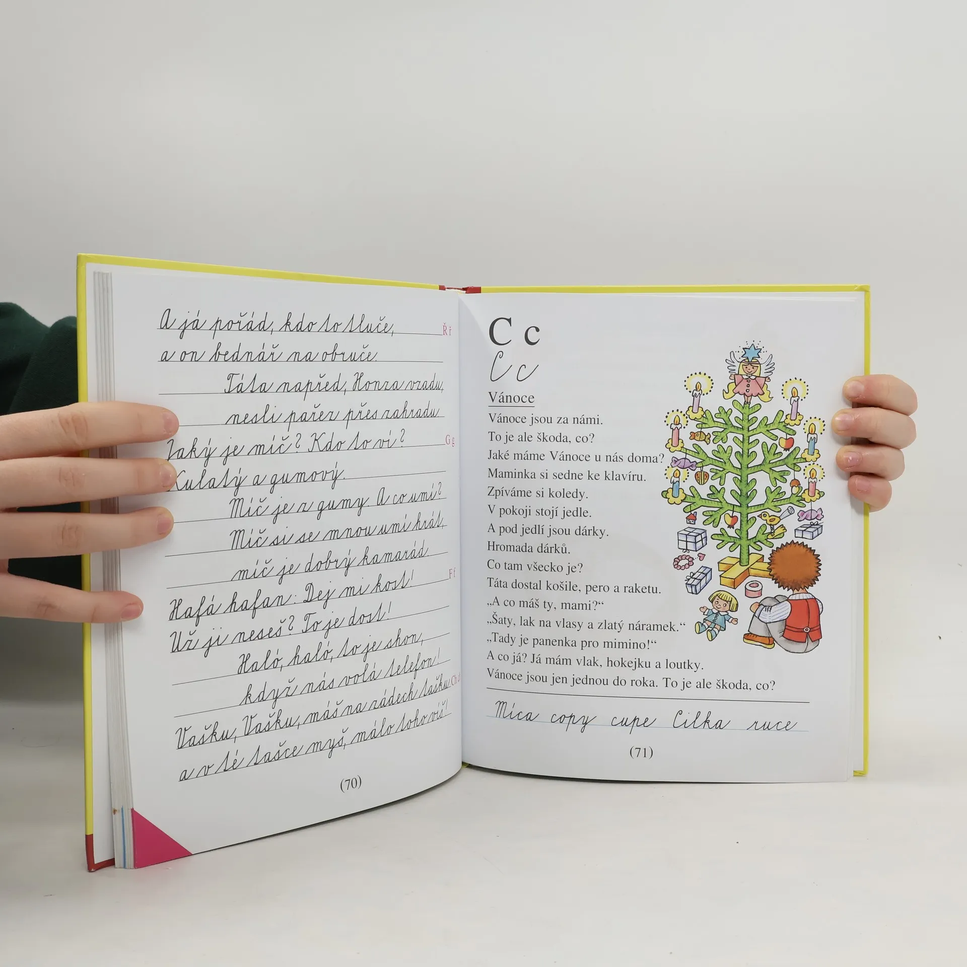 Oblíbený slabikář s vlídnými texty J. Žáčka obsahuje slabiky a slova pro nácvik uvědomělého čtení, dětské básně, říkadla a krátké příběhy s častou frekvencí přímé řeči. Slabikář byl oceněn Zlatou stuhou 1993 a téhož roku získal i Cenu Comeniana.