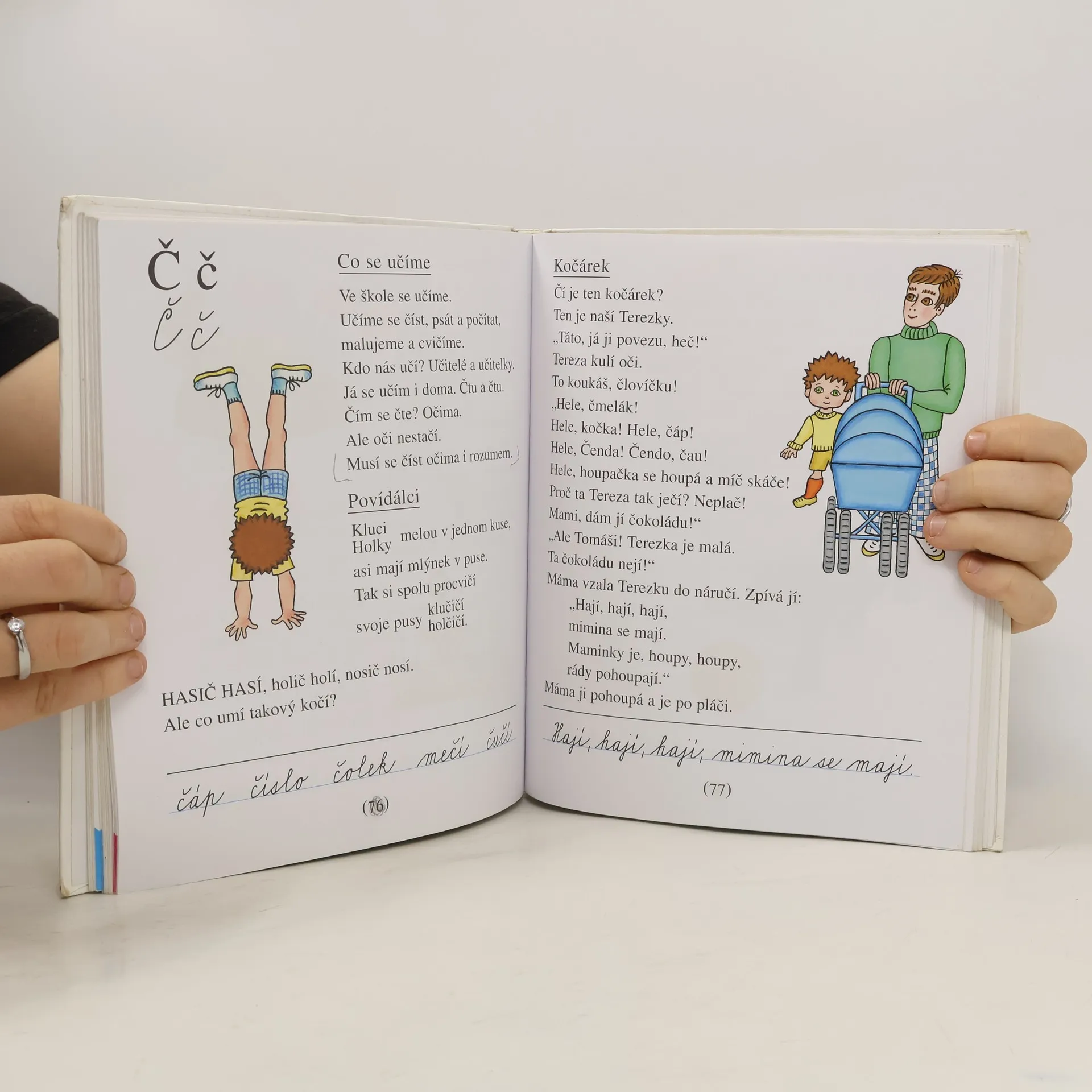 Učebnice obsahuje slabiky a slova pro nácvik uvědomělého čtení, dětské básně, říkadla a krátké příběhy s častou frekvencí přímé řeči. Slabikář byl oceněn Zlatou stuhou 1993 a téhož roku získal i Cenu Comeniana.
