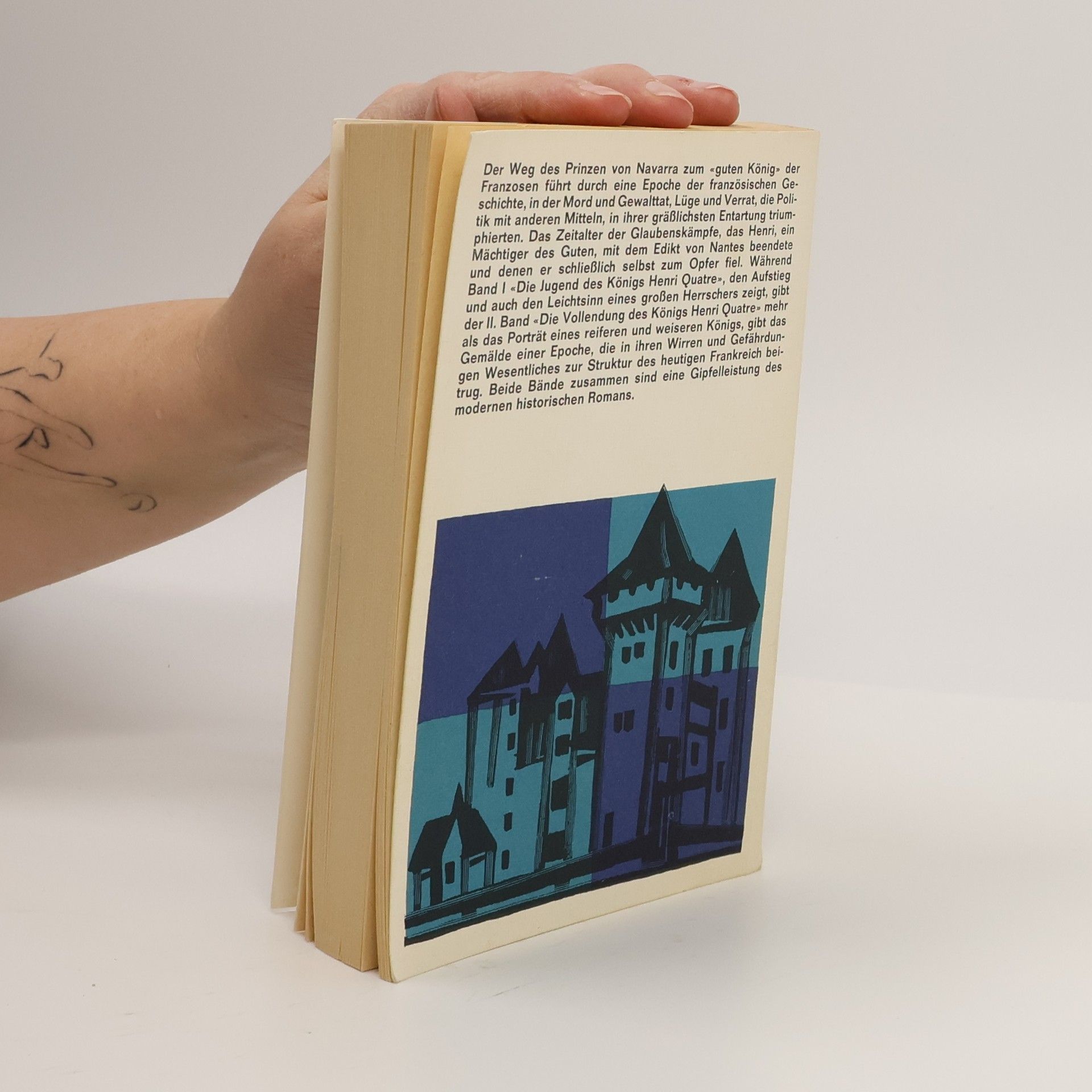 Heinrich Manns monumentales Panorama vom Leben und Wirken Heinrichs IV zeigt den Konflikt, in dem sich der König befindet: ausgestattet mit der Macht, jedoch zur Güte neigend, ringt er um Einheit und Größe seiner Nation. Aufgewachsen in den Pyrenäen, lernt er in Paris die Korruption am Hof und die Zerrissenheit des Landes kennen. Er kämpft an der Spitze der Hugenotten, überlebt die Bartholomäusnacht, wird gefangengenommen und konvertiert unter Zwang zum Katholizismus. Das Religiöse niedriger veranschlagend als den Sieg der Humanität, bekennt er sich nach der Flucht erneut zum Protestantismus. Die Religionskriege dauern an, sein Schwager Heinrich III. wird ermordet; der neue Thronfolger heißt Henri Quatre.