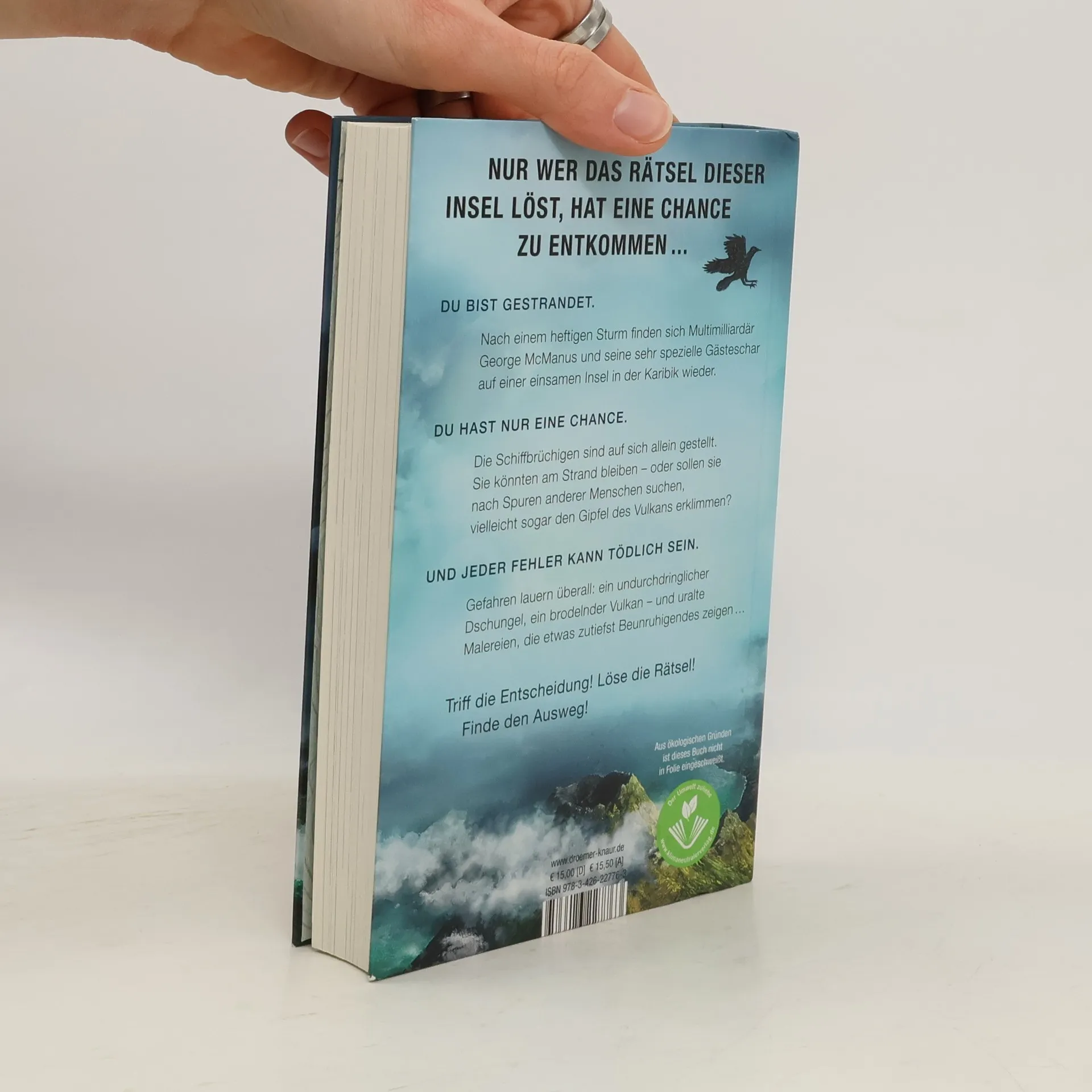 Nur wer das Rätsel dieser Insel löst, hat eine Chance, zu entkommen ... Ein Karibik-Ausflug auf einer Luxus-Yacht wird für einen Millionär und seine Gäste zur tödlichen Herausforderung, als sie in einen Sturm geraten und auf einer einsamen Insel stranden. Funk- und Handynetz funktionieren nicht, und die Insel scheint unbewohnt. Doch als die Schiffbrüchigen Hinweise auf einen alten Militärstützpunkt entdecken, schöpfen sie neue Hoffnung auf Rettung. Sie teilen sich auf, um den Stützpunkt zu suchen, stoßen jedoch auch auf die Überreste eines verlassenen Dorfes der Ureinwohner. Die Malereien, die sie finden, zeigen etwas zutiefst Beunruhigendes. Nach jedem Kapitel dürfen die Leser*innen entscheiden, mit welcher Gruppe sie die geheimnisvolle Insel erkunden wollen. Dabei begegnen sie immer wieder Rätsel-Aufgaben, die im Buch illustriert sind und selbst gelöst werden können. Jede richtige Antwort bringt die Schiffbrüchigen dem Geheimnis der Insel näher, während jede falsche Antwort sie dem Verderben aussetzt. Diese innovative und spannende Unterhaltung von Bestseller-Autor Wolfgang Hohlbein und Rätsel-Experte Jens Schumacher wird alle Thriller-Leser*innen und Escape-Room-Fans begeistern.