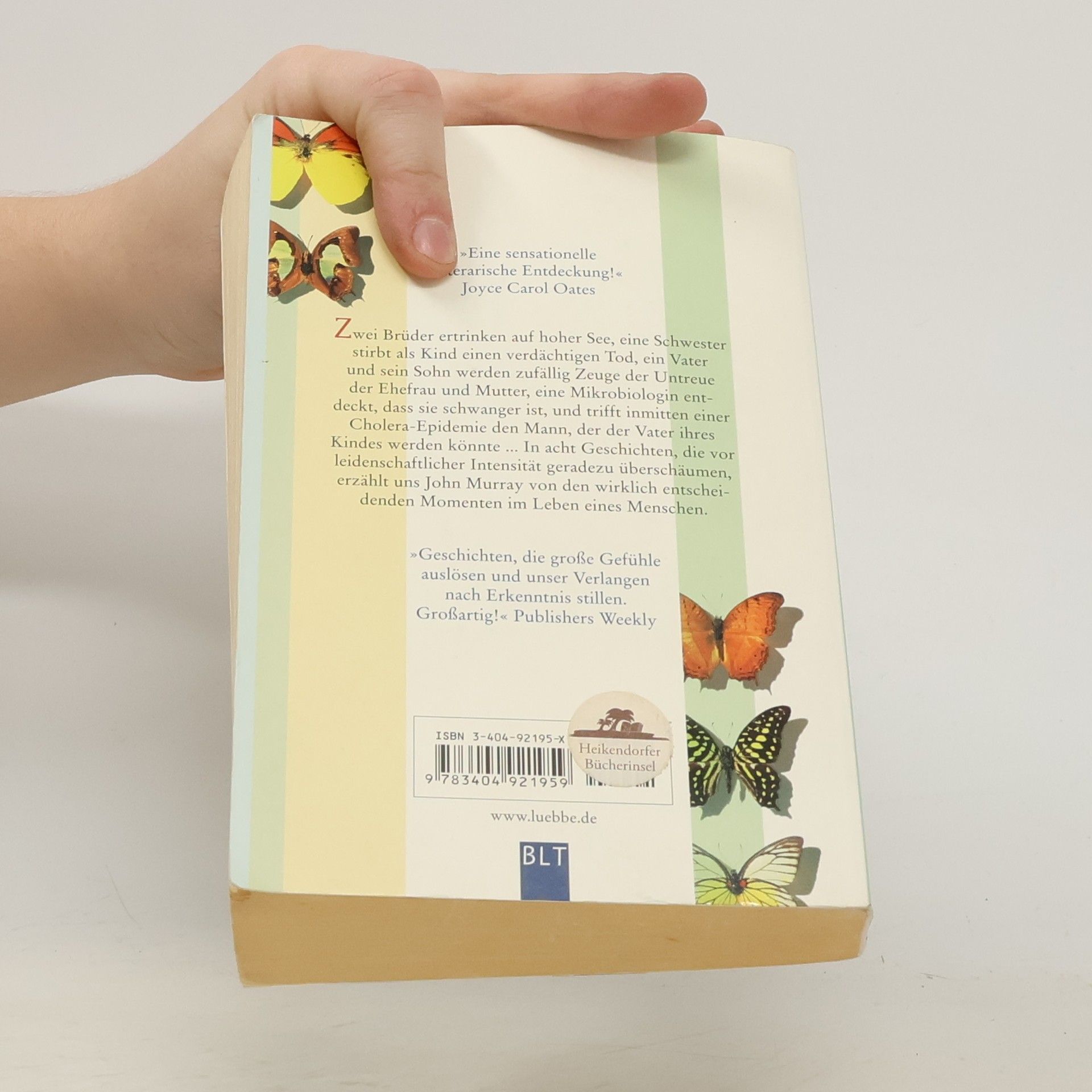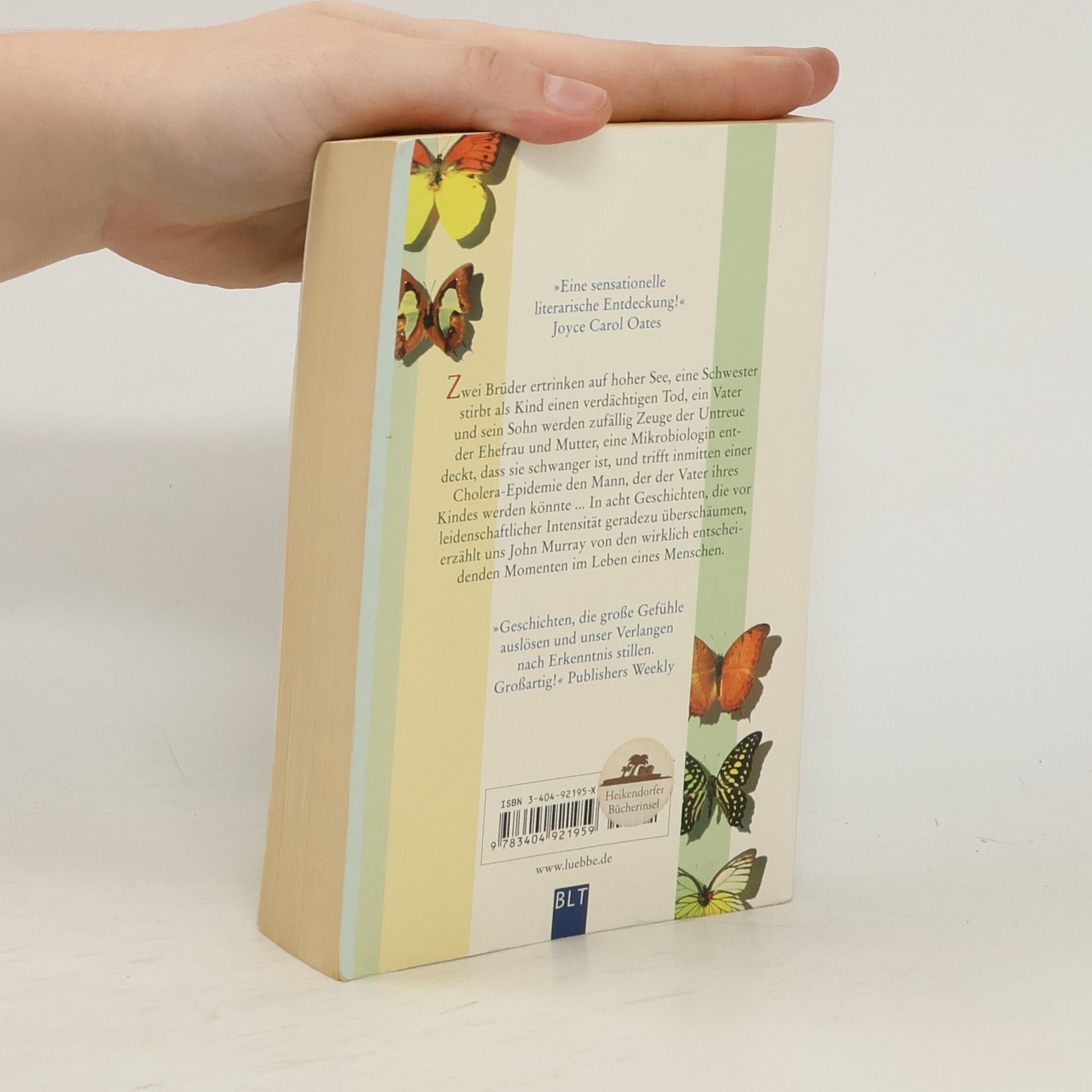 In acht intensiven Geschichten thematisiert John Murray entscheidende Lebensmomente: zwei ertrinkende Brüder, den verdächtigen Tod einer Schwester, Untreue in der Familie und eine schwangere Mikrobiologin während einer Cholera-Epidemie. Joyce Carol Oates bezeichnet das Werk als sensationelle literarische Entdeckung.