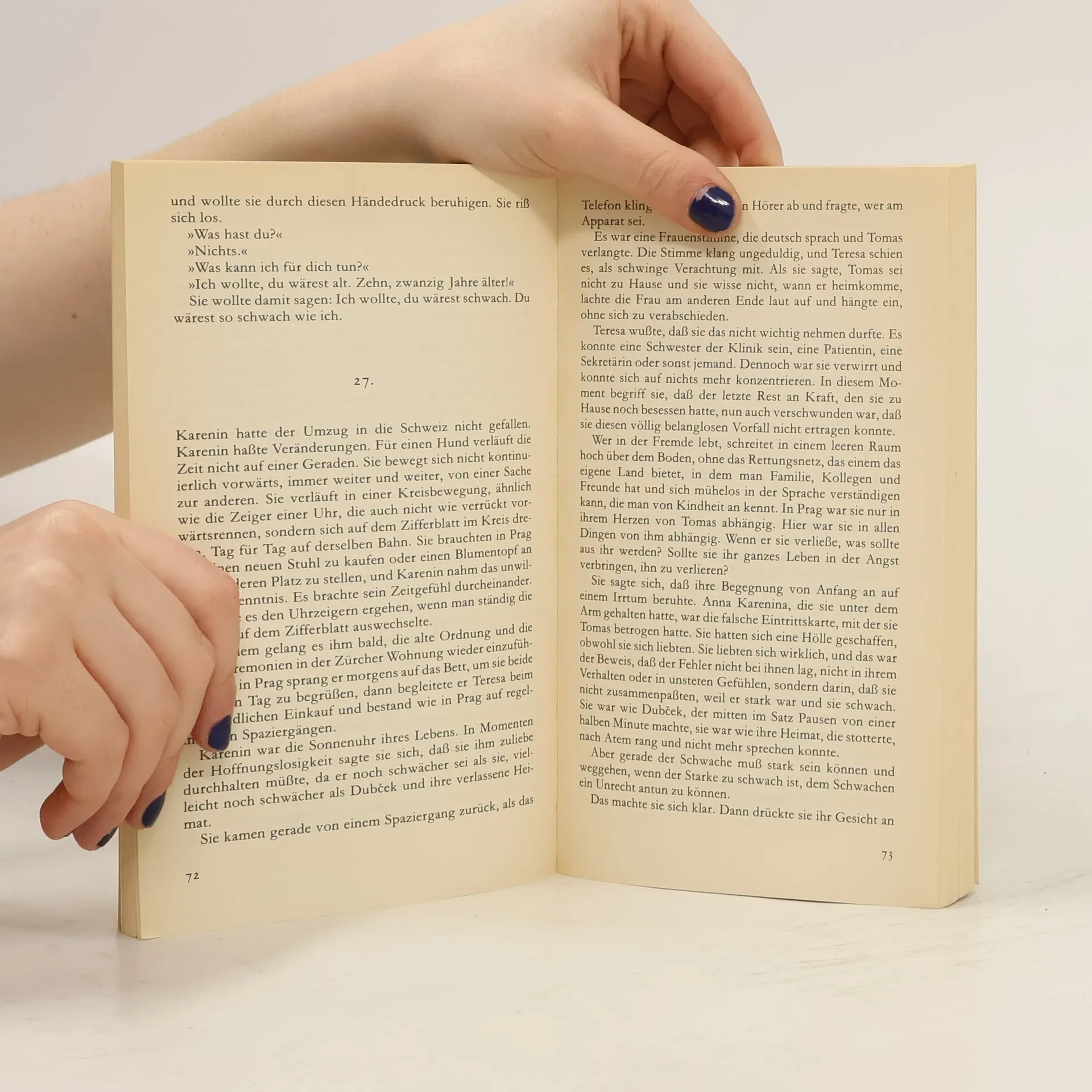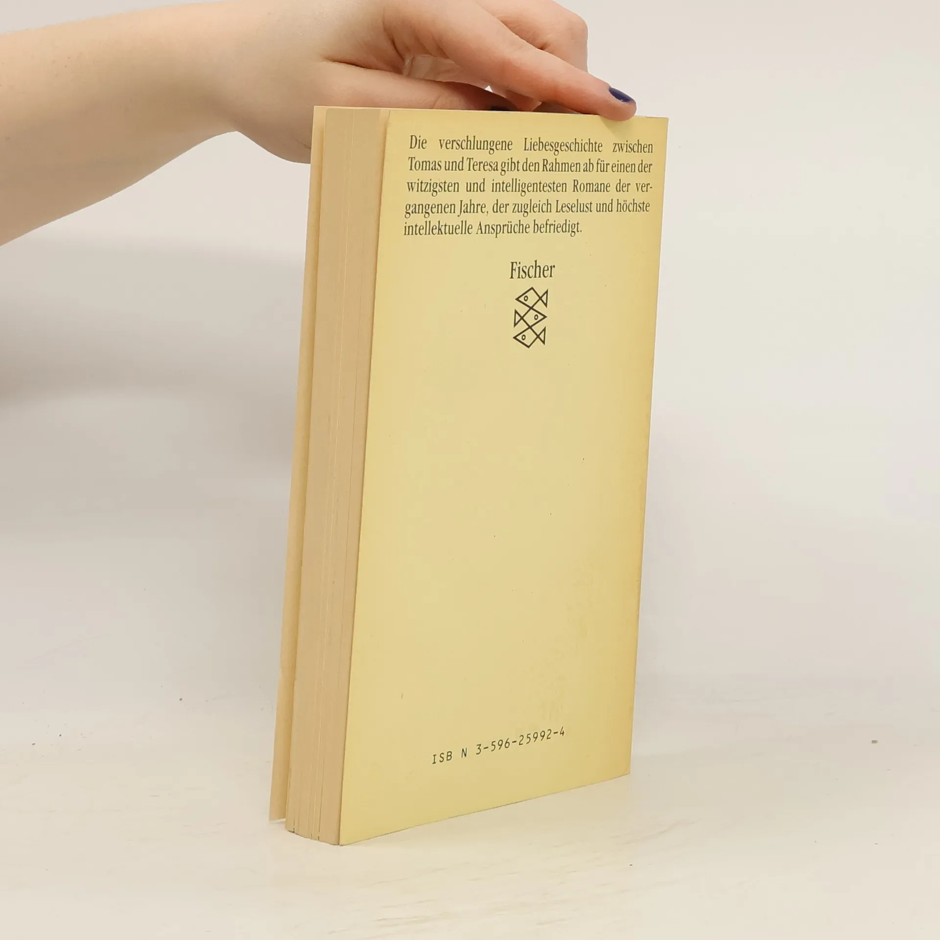 Milan Kundera: "Die unerträgliche Leichtigkeit des Seins". Roman. Aus dem Tschechischen von Susanna Roth. Fischer Taschenbuch Verlag, Frankfurt am Main 1987. Nr. 5992. 300 S., br., 9,80 DM