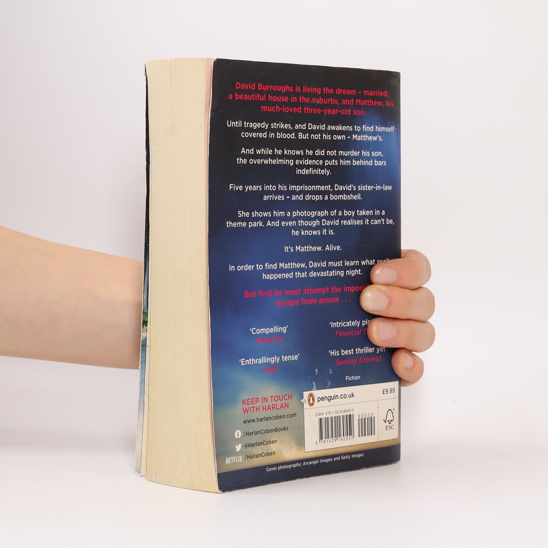 David and Cheryl Burroughs are living the dream - married, a beautiful house in the suburbs, a three year old son named Matthew - when tragedy strikes one night in the worst possible way.David awakes to find himself covered in blood, but not his own - his son's. And while he knows he did not murder his son, the overwhelming evidence against him puts him behind bars indefinitely.Five years into his imprisonment, Cheryl's sister arrives - and drops a bombshell.She's come with a photograph that a friend took on vacation at a theme park. The boy in the background seems familiar - and even though David realizes it can't be, he knows it is. It's Matthew, and he's still alive.David plans a harrowing escape from prison, determined to do what seems impossible - save his son, clear his own name, and discover the real story of what happened that devastating night.