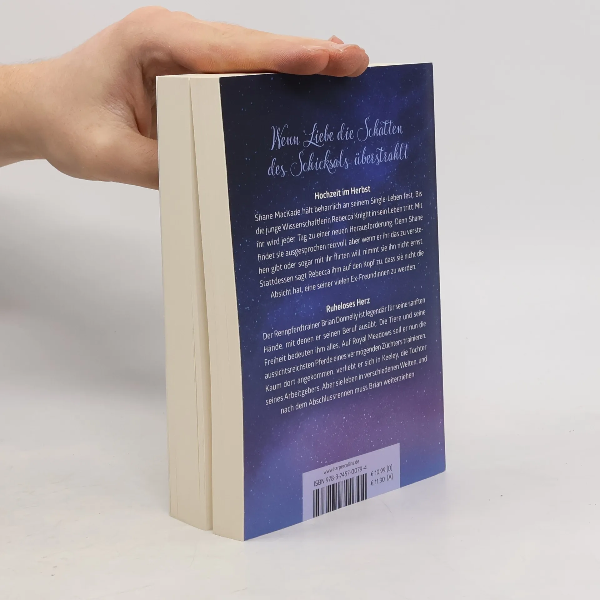 »Perfektion erreicht man nicht mit Zauberei, sondern – wie in Nora Roberts‘ Fall – mit exzellentem Können.« The New York Times Hochzeit im Herbst Shane MacKade hält beharrlich an seinem Single-Leben fest. Bis die junge Wissenschaftlerin Rebecca Knight in sein Leben tritt. Mit ihr wird jeder Tag zu einer neuen Herausforderung. Denn Shane findet sie ausgesprochen reizvoll, aber wenn er ihr das zu verstehen gibt oder sogar mit ihr flirten will, nimmt sie ihn nicht ernst. Stattdessen sagt Rebecca ihm auf den Kopf zu, dass sie nicht die Absicht hat, eine seiner vielen Exfreundinnen zu werden. Ruheloses Herz Der Rennpferdtrainer Brian Donnelly ist legendär für seine sanften Hände, mit denen er seinen Beruf ausübt. Die Tiere und seine Freiheit bedeuten ihm alles. Auf Royal Meadows soll er nun die aussichtsreichsten Pferde eines vermögenden Züchters trainieren. Kaum dort angekommen, verliebt er sich in Keeley, die Tochter seines Arbeitgebers. Aber sie leben in verschiedenen Welten, und nach dem Abschlussrennen muss Brian weiterziehen …