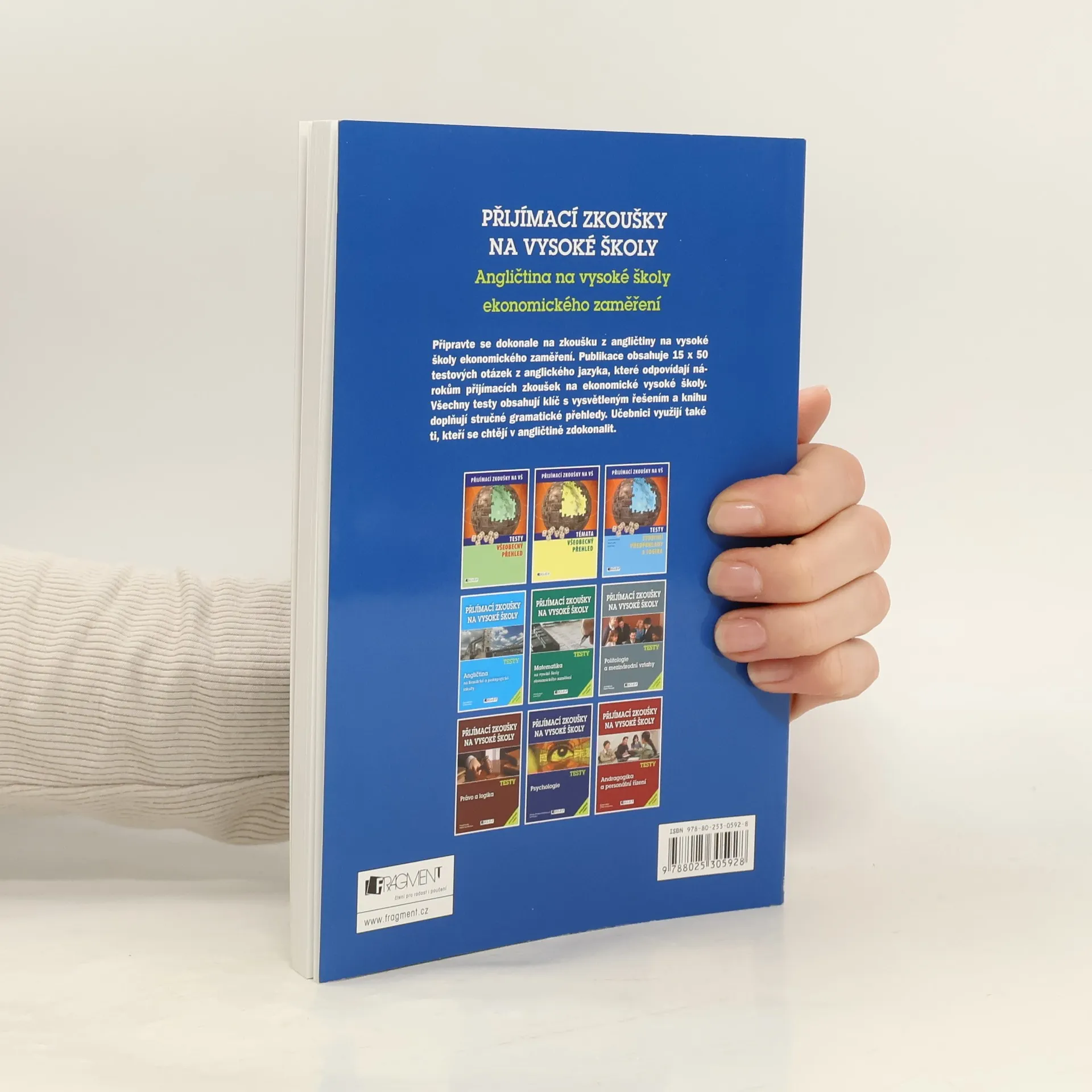 Zvládněte přijímací zkoušky na VŠ! Připravte se dokonale na zkoušku z angličtiny na vysoké školy ekonomického zaměření. Publikace obsahuje 15 x 50 testových otázek z anglického jazyka, které odpovídají nárokům přijímacích zkoušek na ekonomické vysoké školy. Všechny testy obsahují klíč s vysvětleným řešením a praktickým doplňkem knihy jsou stručné gramatické přehledy. Učebnici využijí všichni ti, kteří si chtějí ověřit nebo zdokonalit své dosavadní znalosti z anglického jazyka.