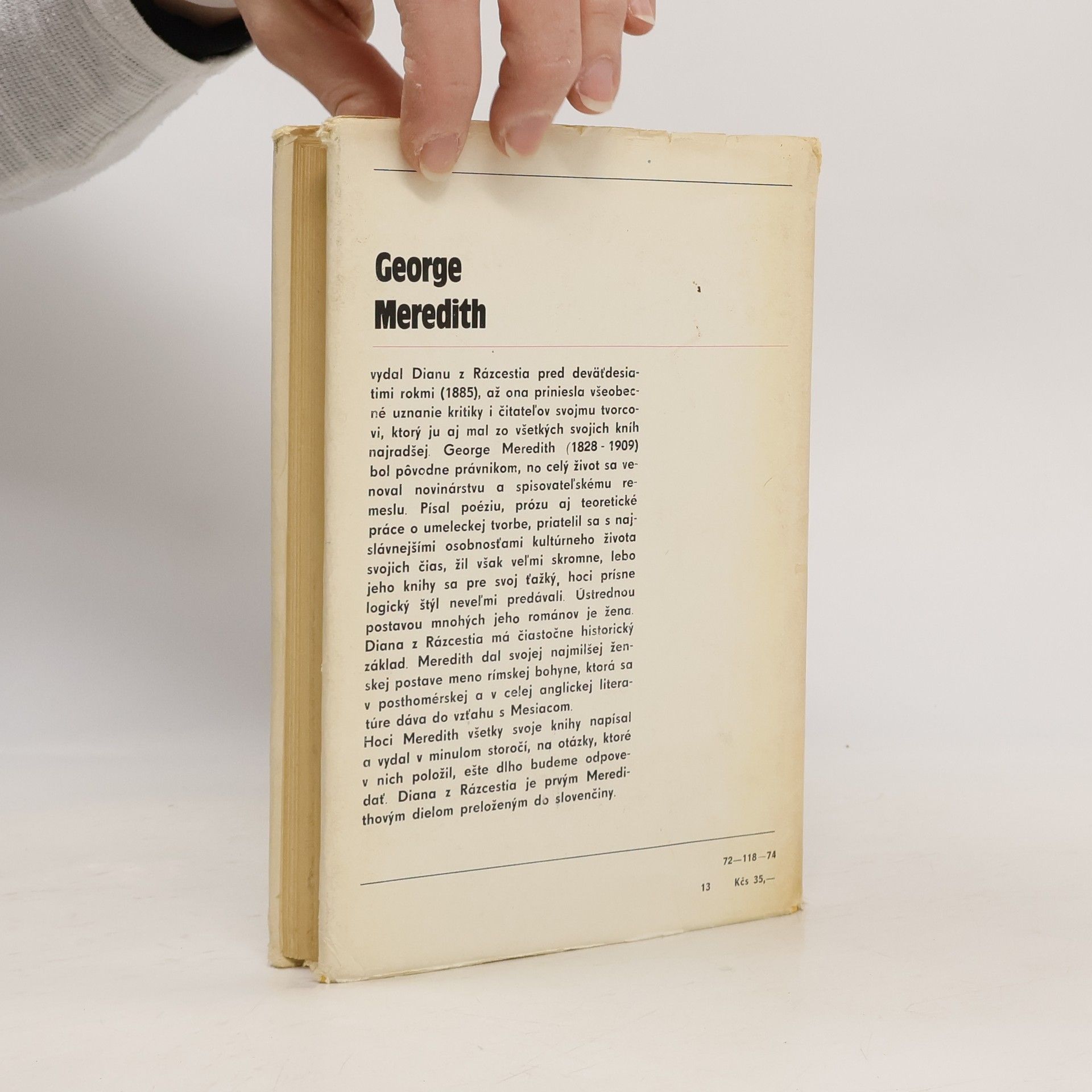 George Meredith vydal Dianu z Rázcestia pred deväťdesiatimi rokmi (1885), až ona priniesla všeobecné uznanie kritiky i čitateľov svojmu tvorcovi, ktorý ju aj mal zo všetkých svojich kníh najradšej. George Meredith (1828 - 1909) bol pôvodne právnikom, no celý život sa venoval novinárstvu a spisovateľskému remeslu. Písal poéziu, prózu aj teoretické práce o umeleckej tvorbe, priatelil sa s najslávnejšími osobnosťami kultúrneho života svojich čias, žil však veľmi skromne, lebo jeho knihy sa pre svoj ťažký, hoci prísne logický štýl neveľmi predávali. Ústrednou postavou mnohých jeho románov je žena. Diana z Rázcestia má čiastočne historický základ. Meredith dal svojej najmilšej ženskej postave meno rímskej bohyne, ktorá sa v posthomérskej a v celej anglickej literatúre dáva do vzťahu s Mesiacom. Hoci Meredith všetky svoje knihy napísal a vydal v minulom storočí, na otázky, ktoré v nich položil, ešte dlho budeme odpovedať. Diana z Rázcestia je prvým Meredithovým dielom preloženým do slovenčiny.