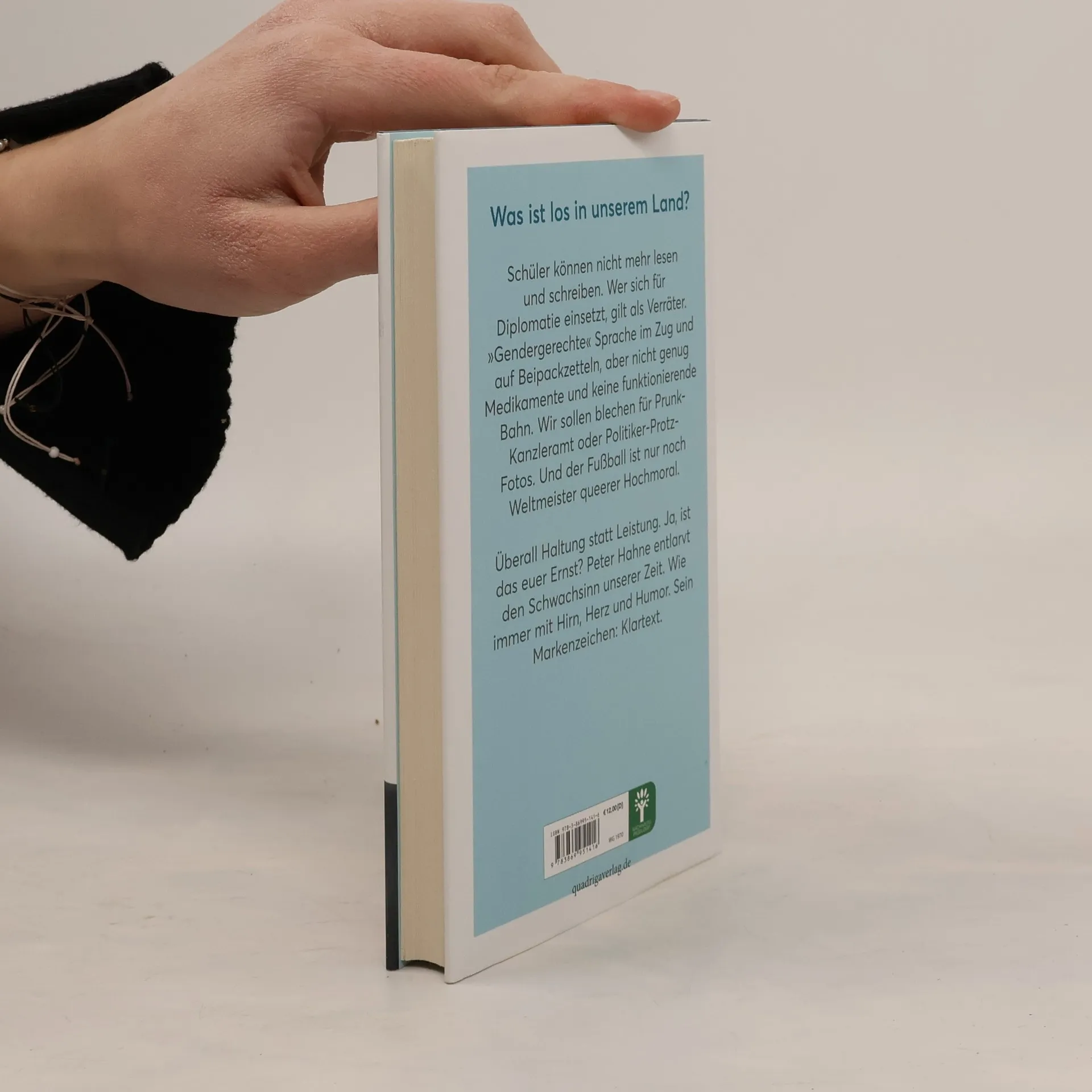 Was ist los in unserem Land? Schüler können nicht mehr lesen und schreiben. Wer sich für Diplomatie einsetzt, gilt als Verräter. »Gendergerechte« Sprache im Zug und auf Beipackzetteln, aber nicht genug Medikamente und keine funktionierende Bahn. Wir sollen blechen für Prunk-Kanzleramt oder Politiker-Protz-Fotos. »Corona« bleibt unaufgeklärt. Warnhinweise für »Otto« oder »Harald Schmidt«, als wäre das Volk blöd. Und der Fußball ist nur noch Weltmeister queerer Hochmoral. Überall Haltung statt Leistung. Ja, ist das euer Ernst? Peter Hahne entlarvt den Schwachsinn. Wie immer mit Hirn, Herz und Humor. Sein Markenzeichen: Klartext.